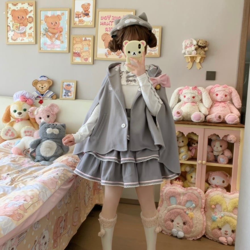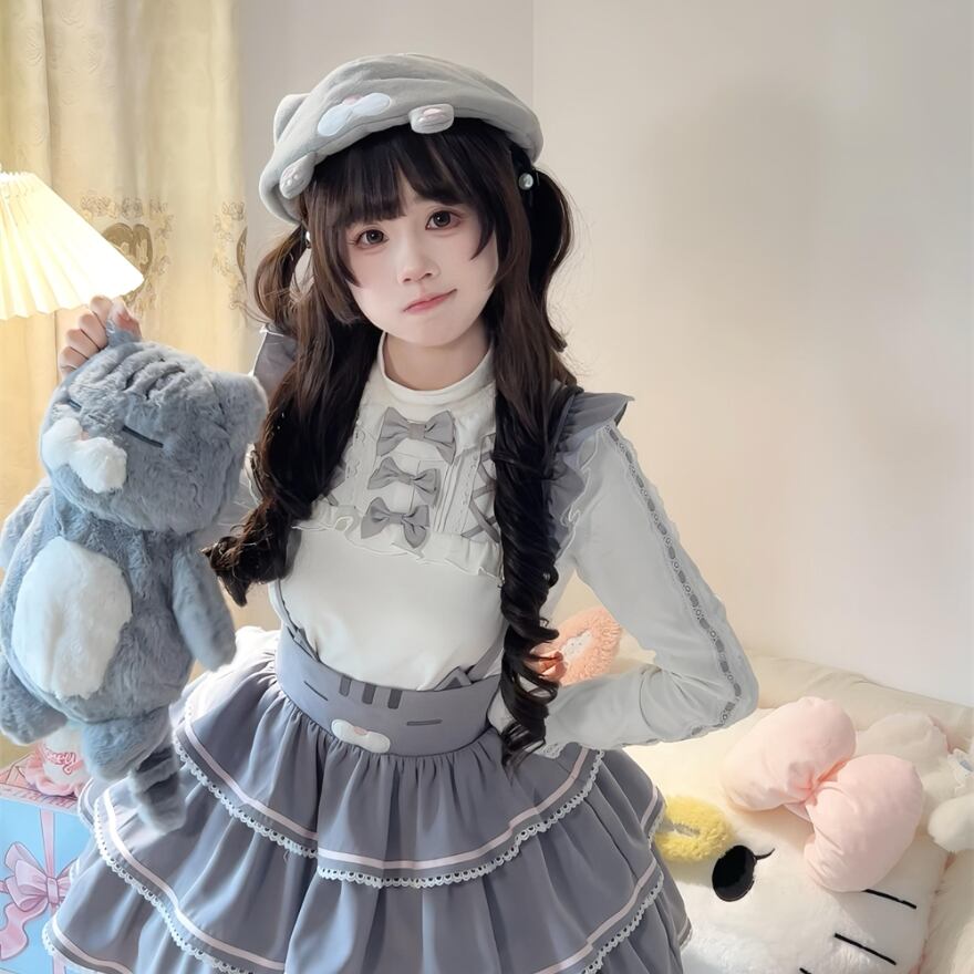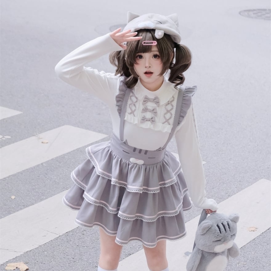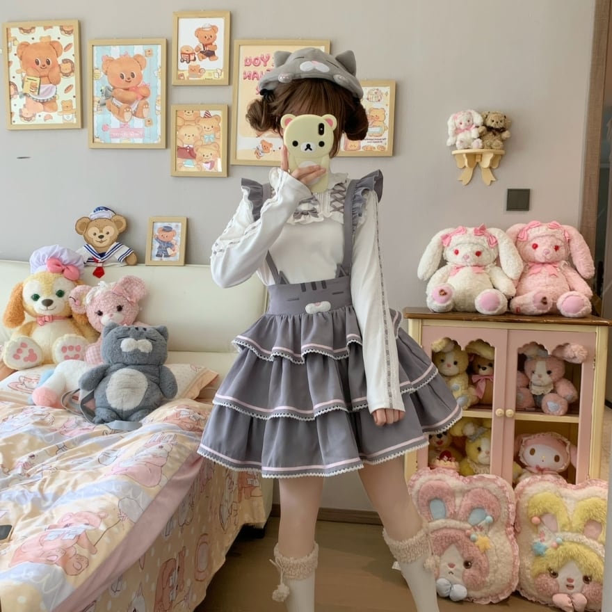 ゆめかわいい 猫探偵 サスペンダースカート フリル ケーキスカート 甘ロリイベント衣装