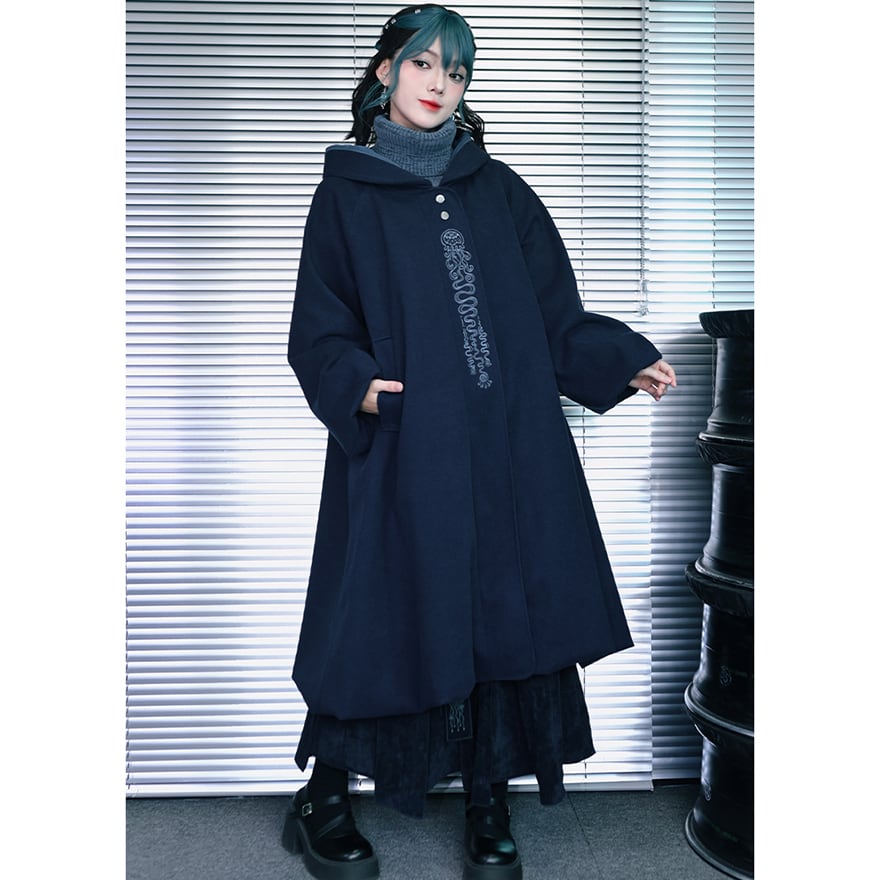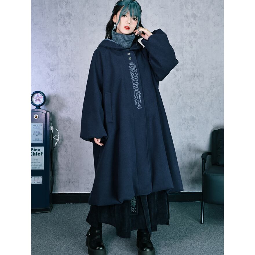 関連キーワード: #中華ゴス #ゴシック #サブカル #コート #アウター #ロングコート #刺繍 #フード #Aライン #個性的 #古怪舎