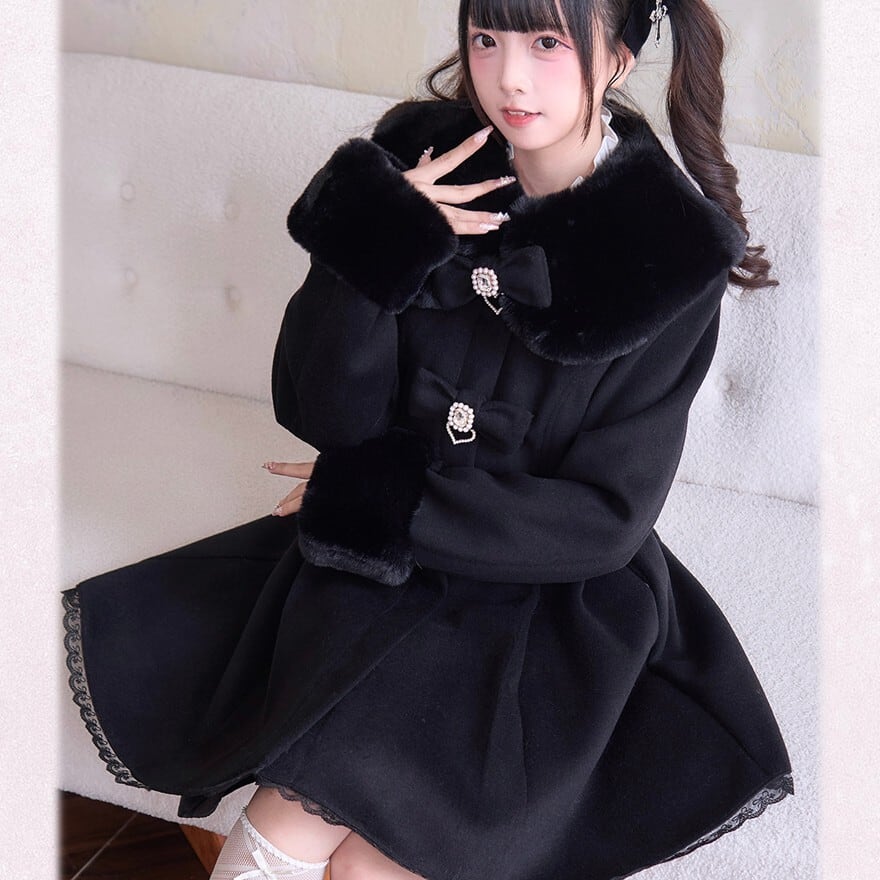 可愛らしさと暖かさを両立させた、ロリータファッションに欠かせない冬の主役アイテムです。