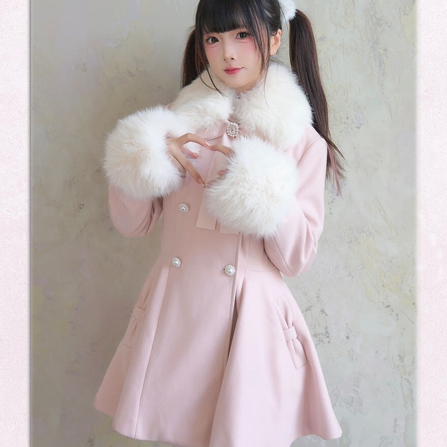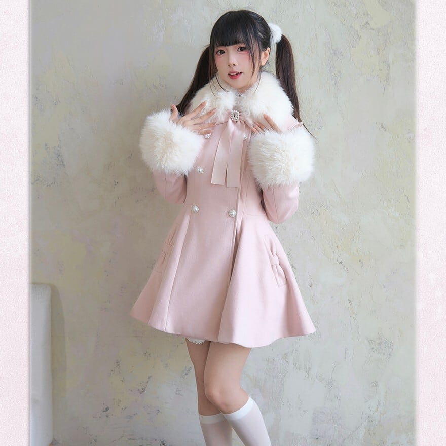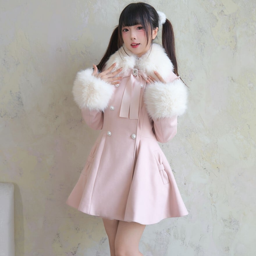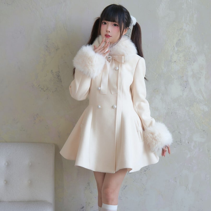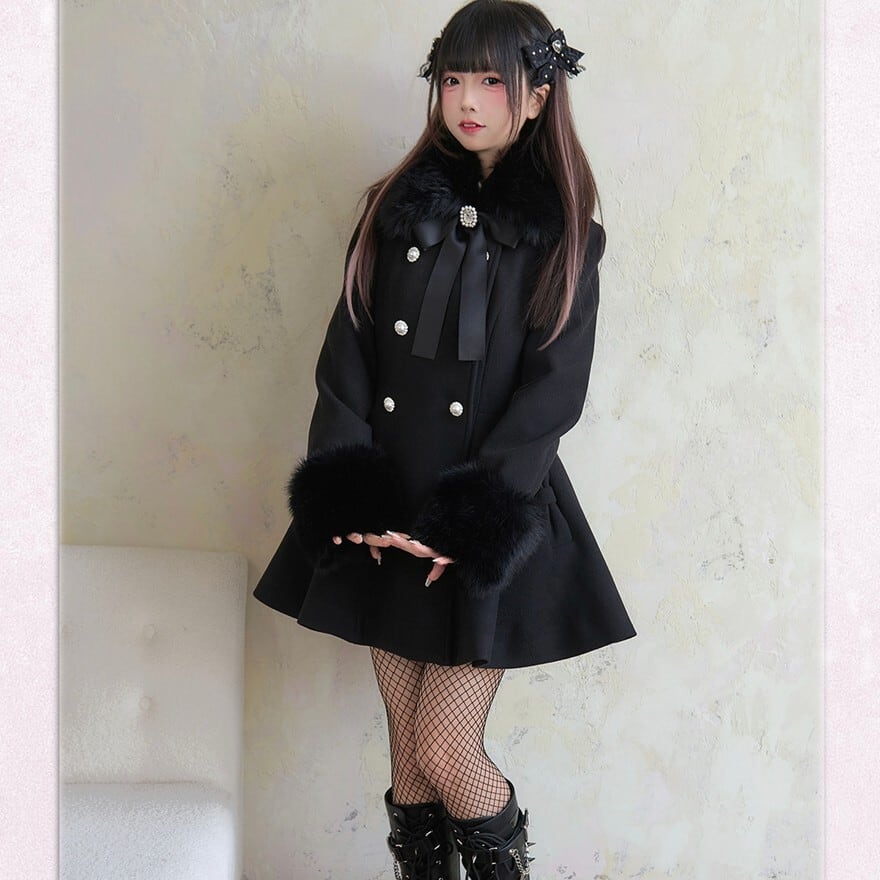 関連キーワード: #ロリータ #コート #アウター #ファー #ダブルボタン #パール #リボン #甘ロリ #ドーリー #地雷系