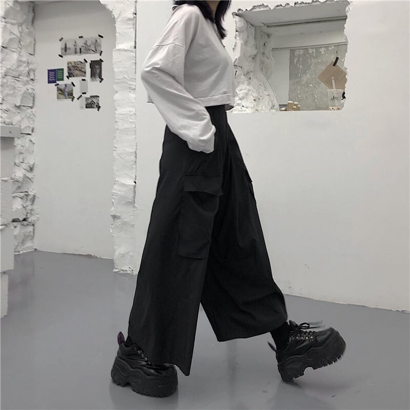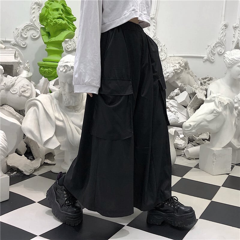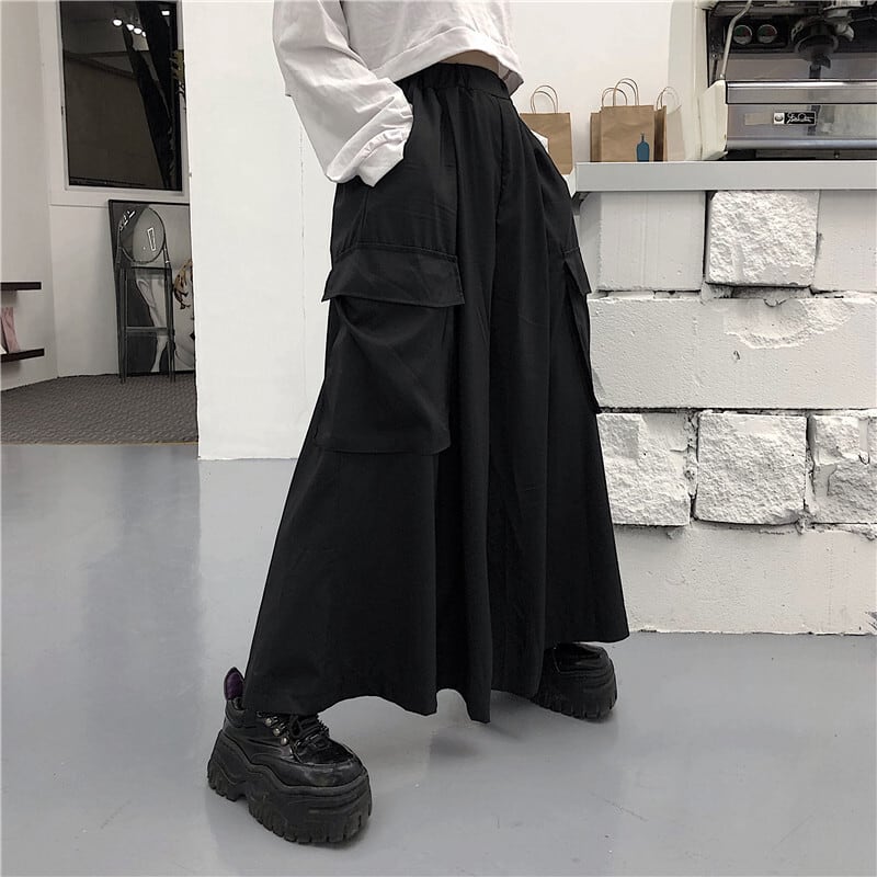ゴシックカジュアル ワイドパンツ 袴パンツ ロング丈 ワイドポケット