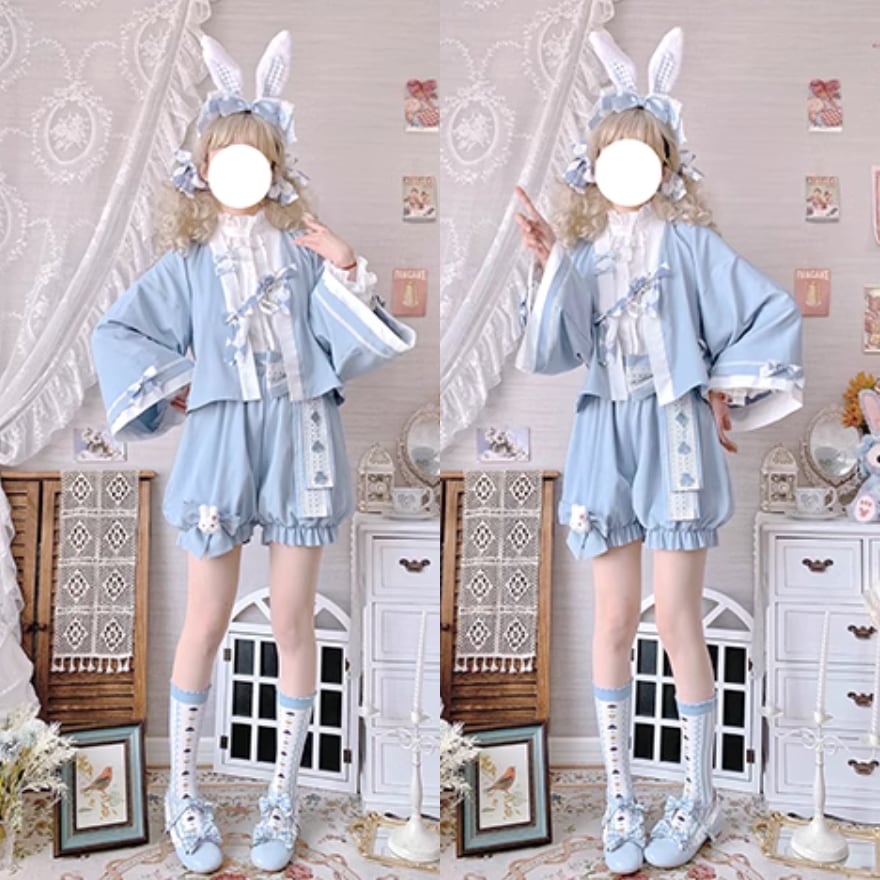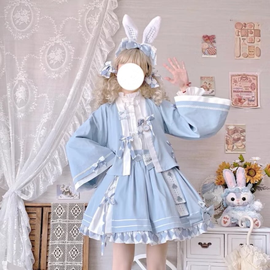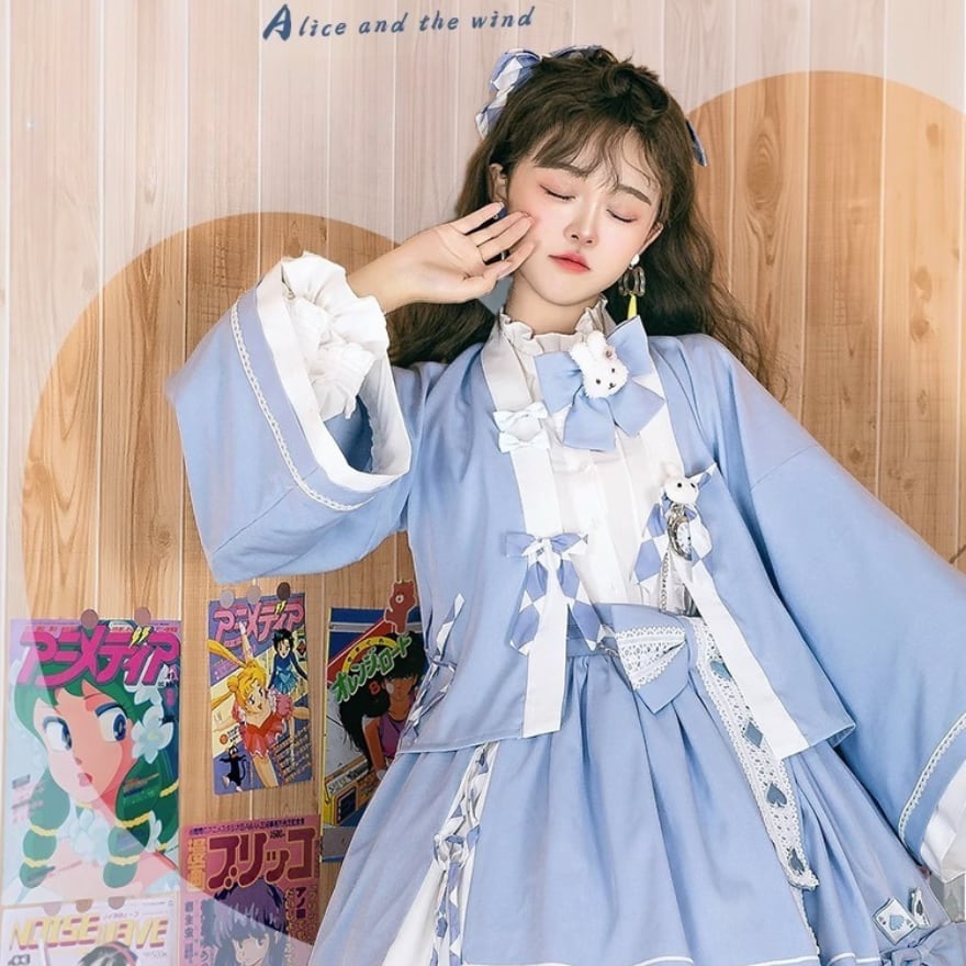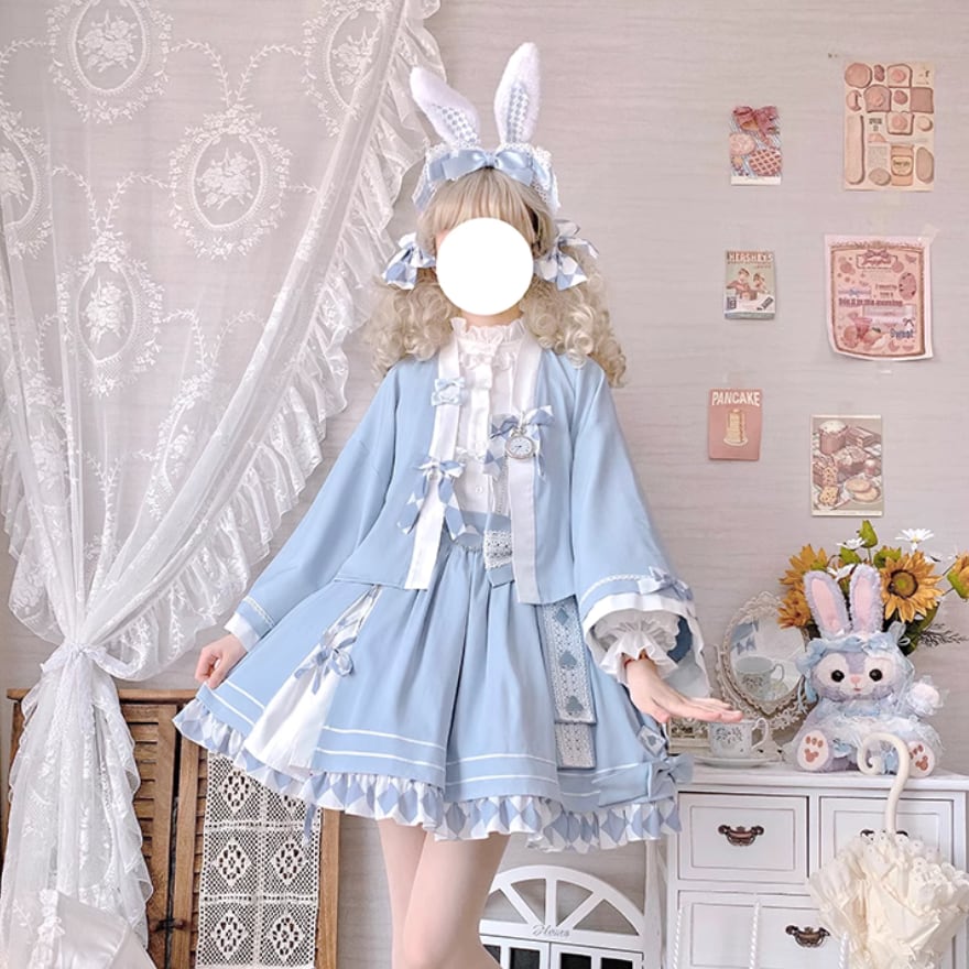 #ゆめかわ #Alice風 #水色ロリィタ #甘ロリ #和ロリ #羽織り #カーディガン #リボン #フリル #パフスリーブ #レイヤード #夢可愛い