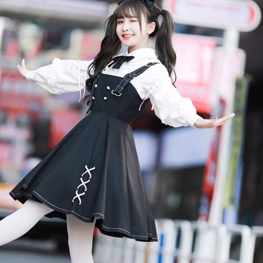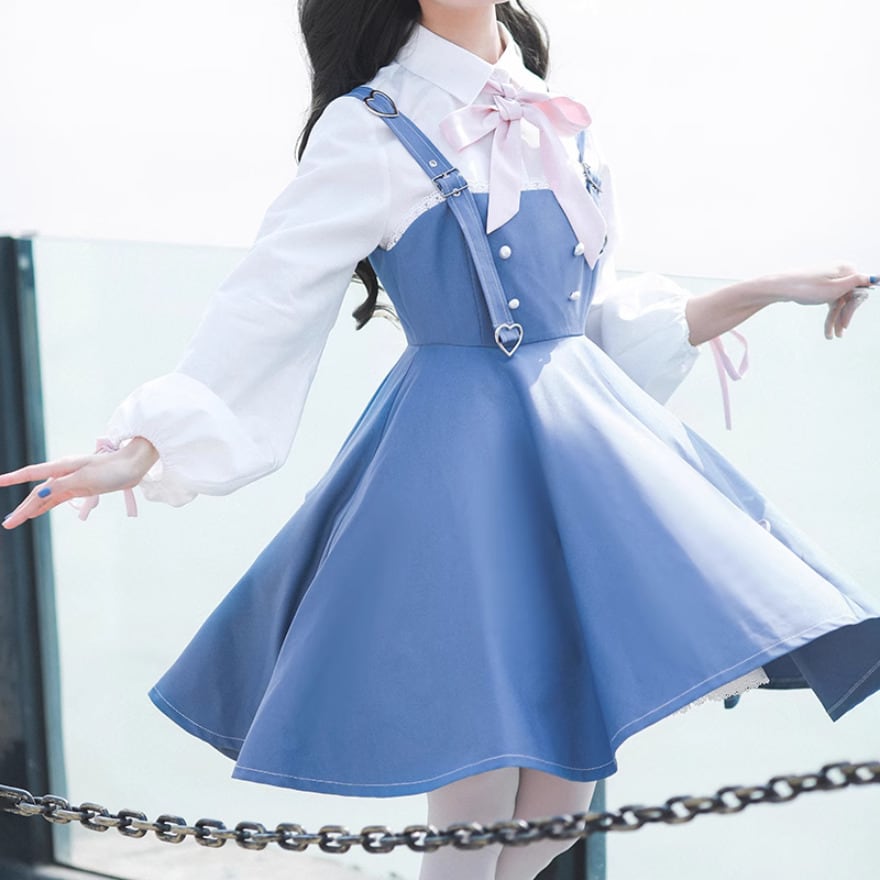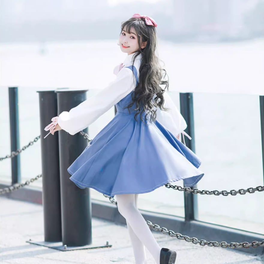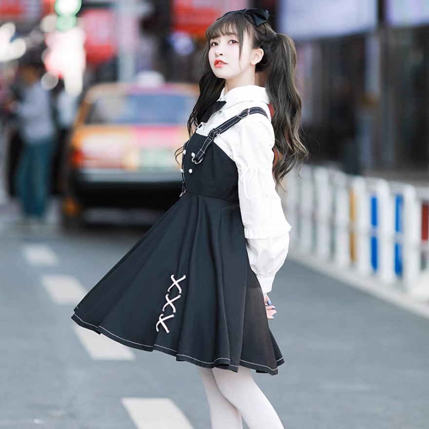量産型セミロリ ブラウス リボンタイ付き ガーリー 甘め 原宿ファッション