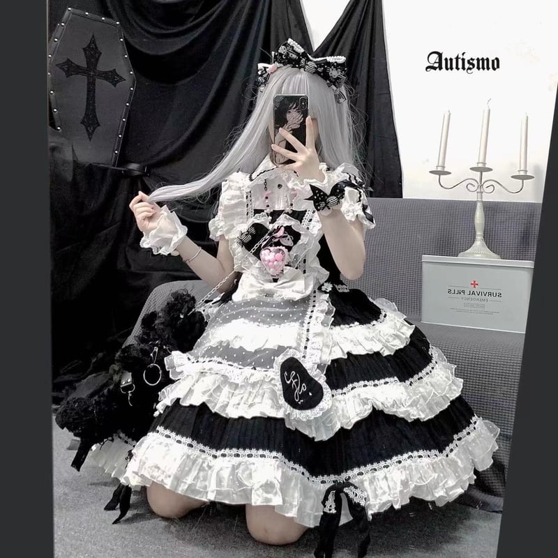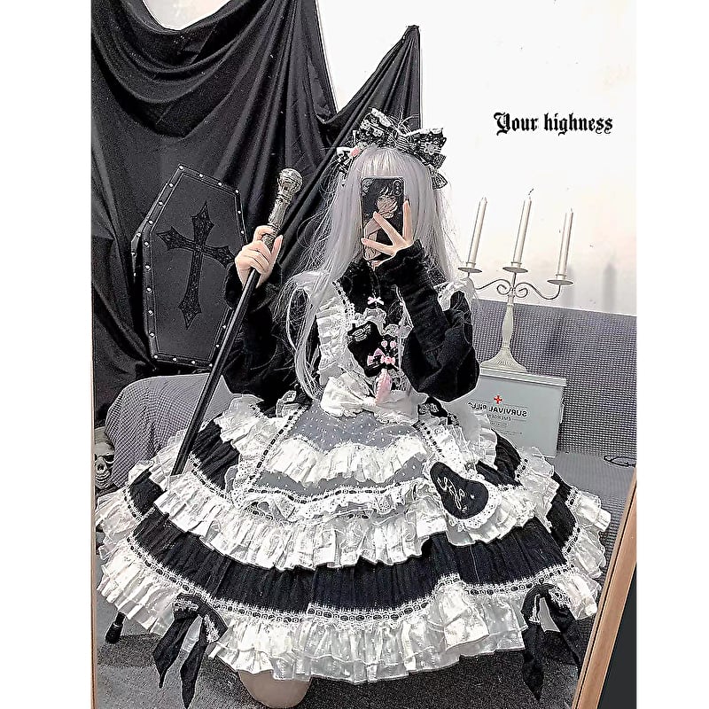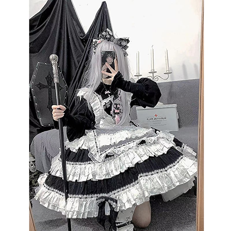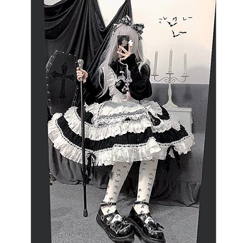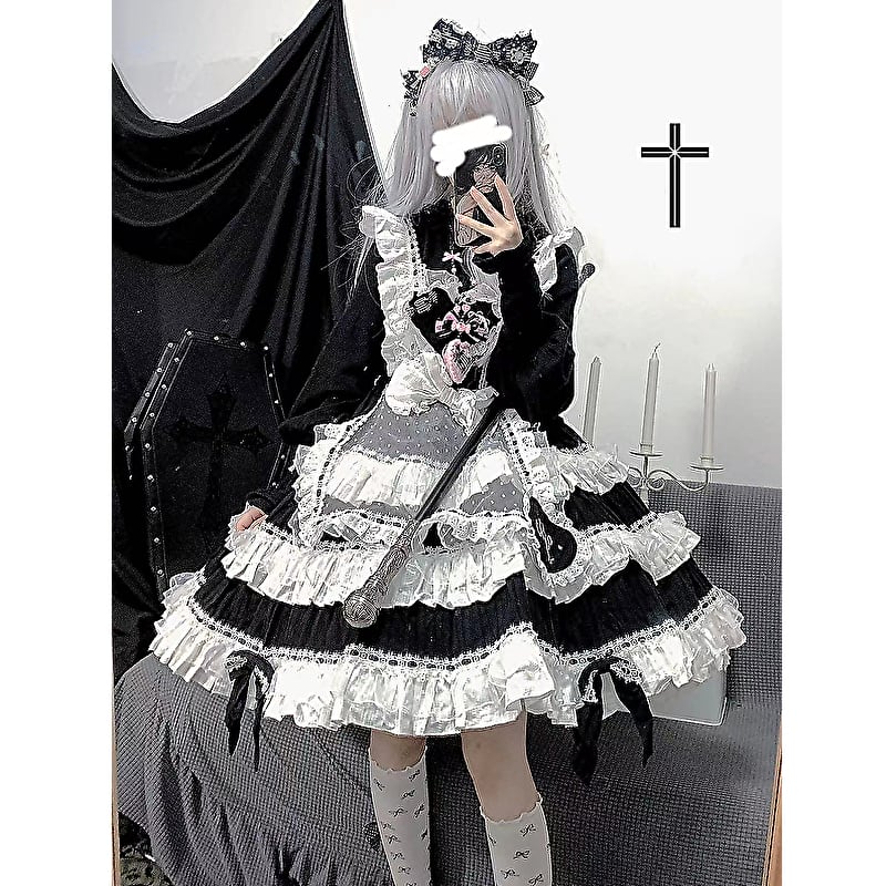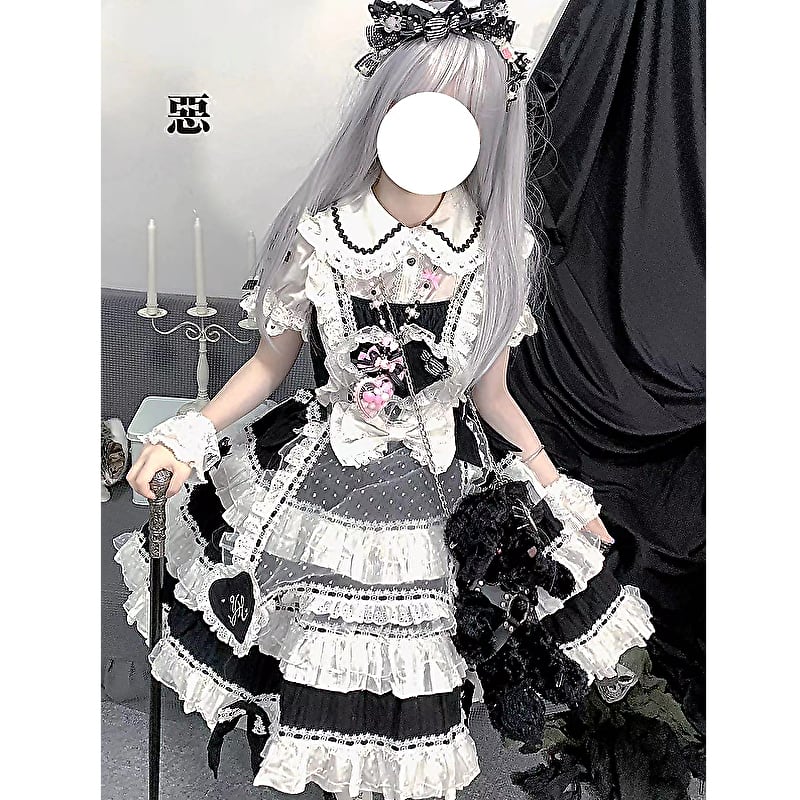 【Deadly Sweetness】悪魔とメイドの契約ドレス / ゴシック ジャンパースカート ケーキスカート パフスリーブ メイド風