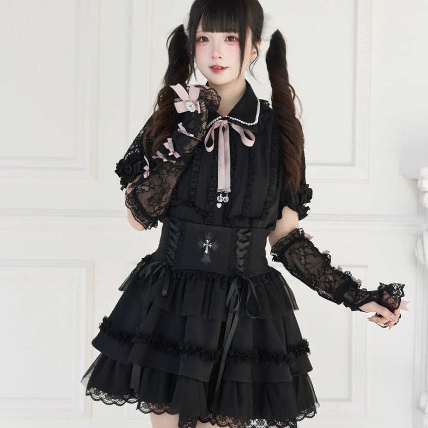 ゴスロリ 量産型 袖カバー レース リボン
