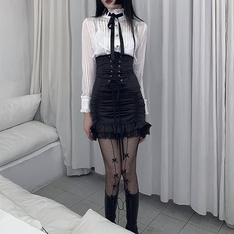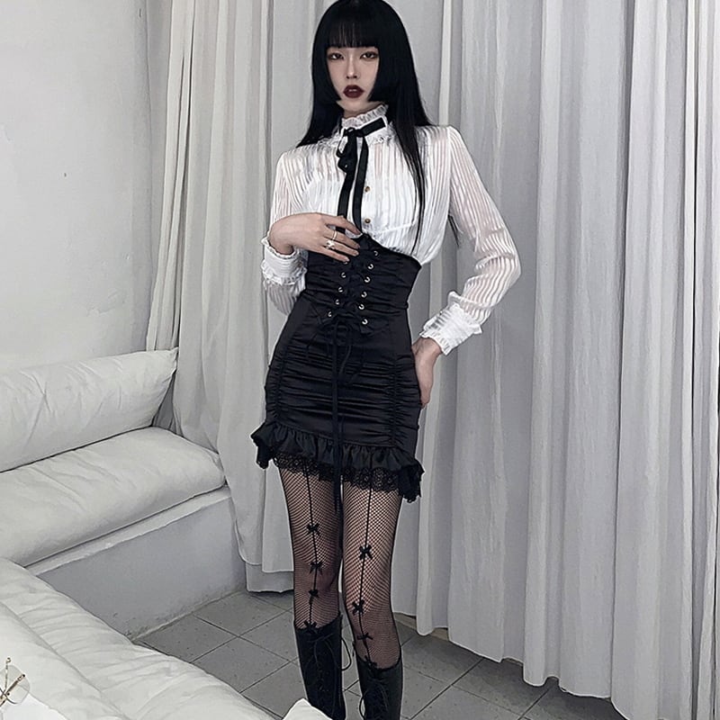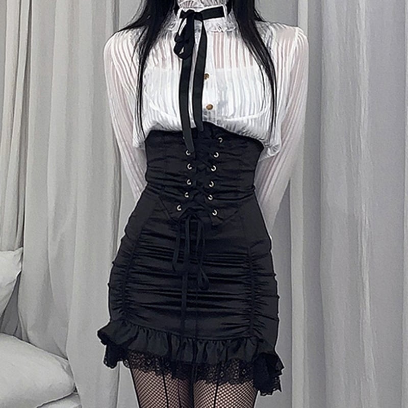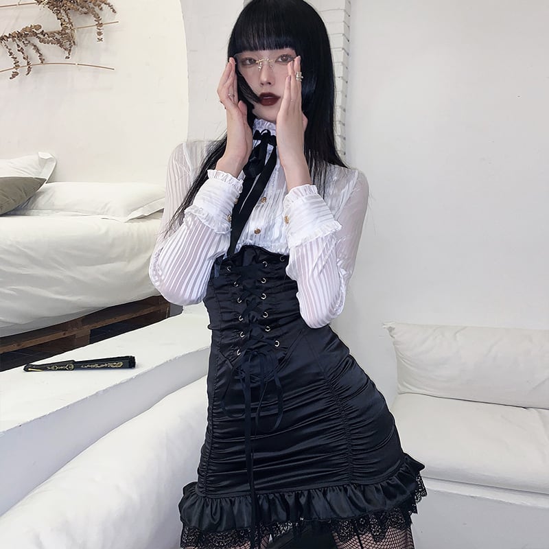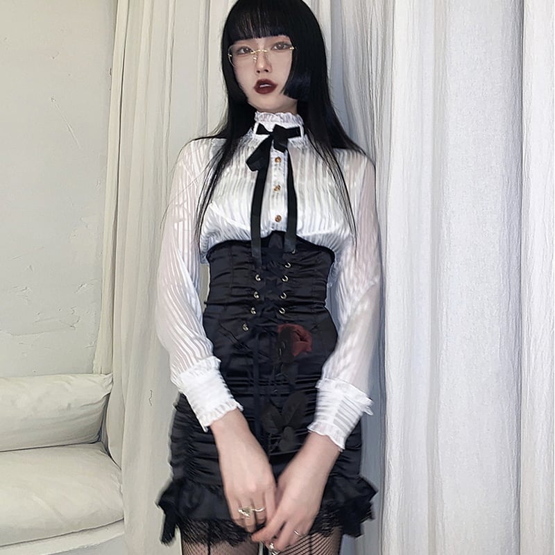 #シアーブラウス #フリルブラウス #地雷系 #量産型 #ゴシック #コルセットコーデ #セクシースタイル #スタンドカラー #レース #長袖ブラウス