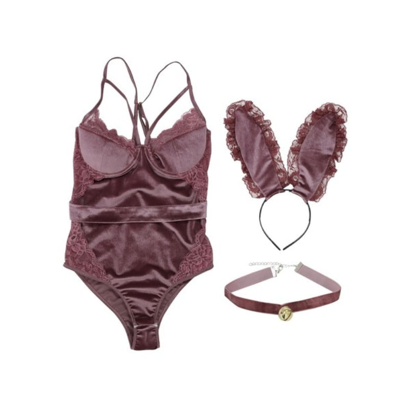【大人セクシー】コスプレ ベロア調 バニーガール | うさ耳 チョーカー ランジェリー
