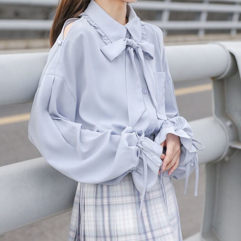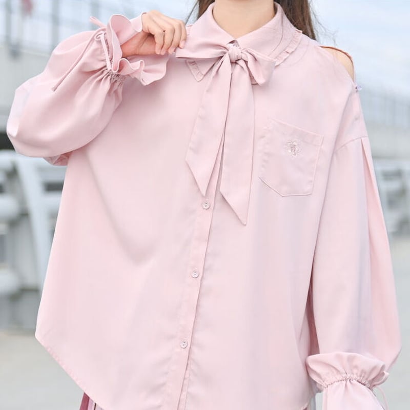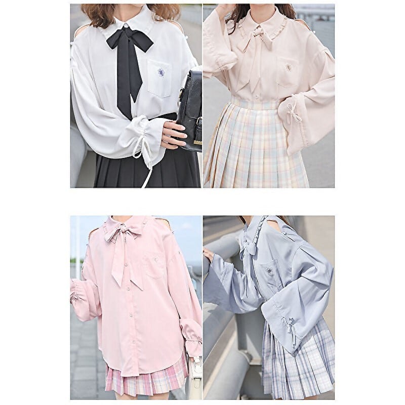 【即納 ホワイトM 】量産型 ロリィタ ブラウス オープンショルダー 丸襟 初心者向き