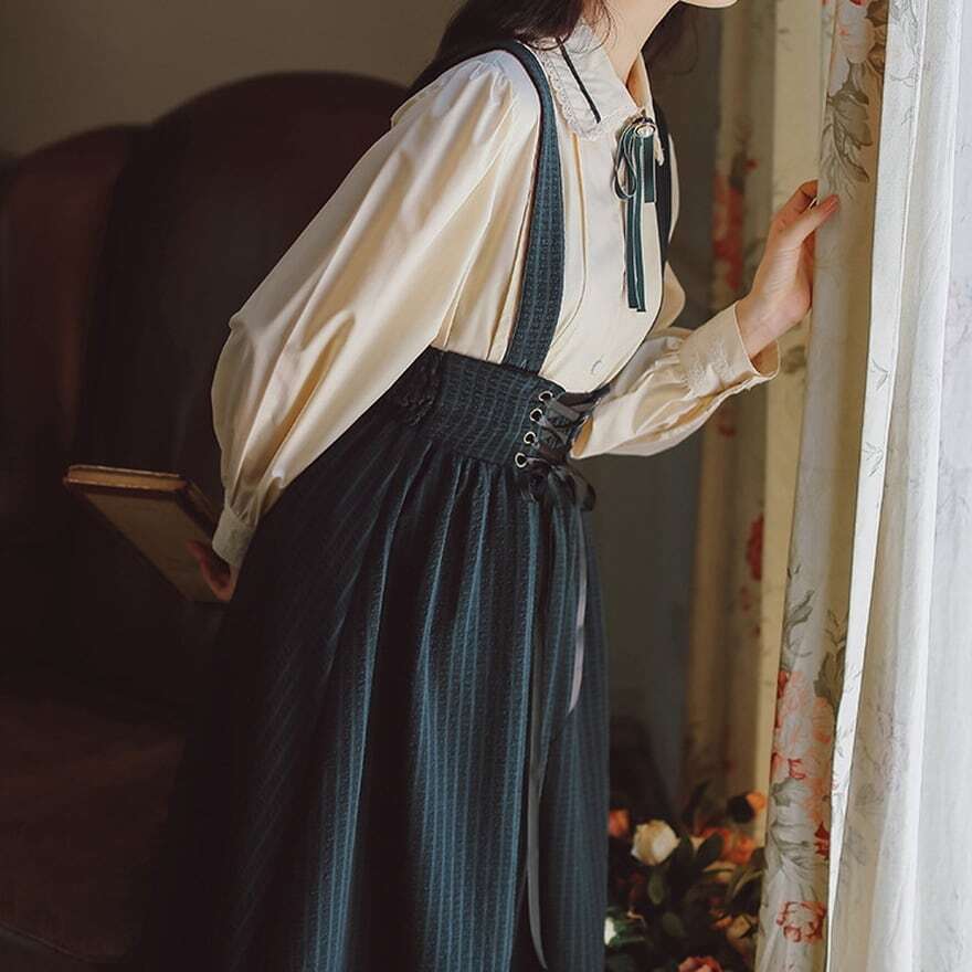 上品でノスタルジックな印象のストライプ柄クラロリセットアップになります。