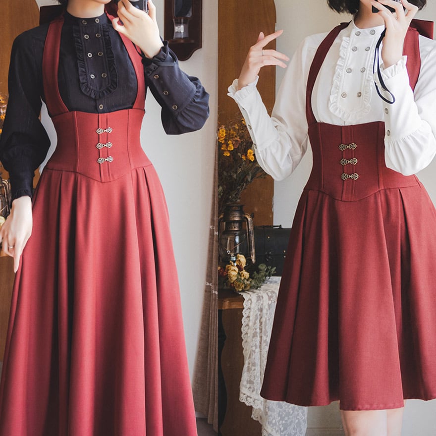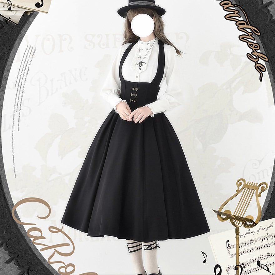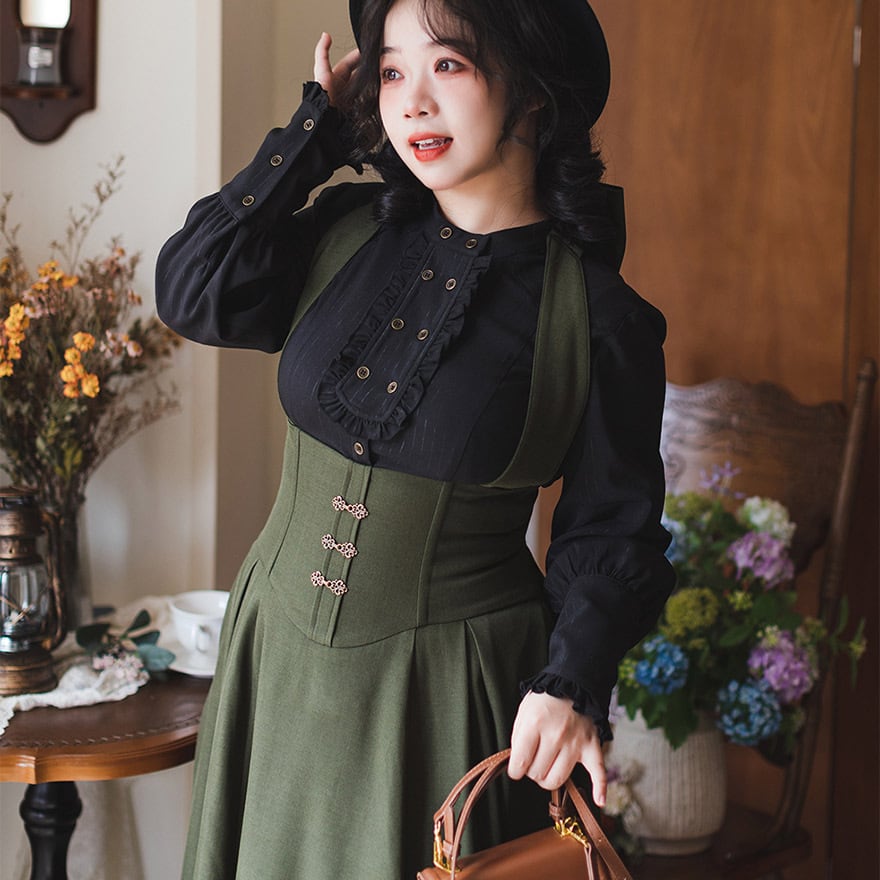 【即納 黒XL】クラロリ 長袖シャツ フリル ノーカラー Forestシリーズ ブラウス