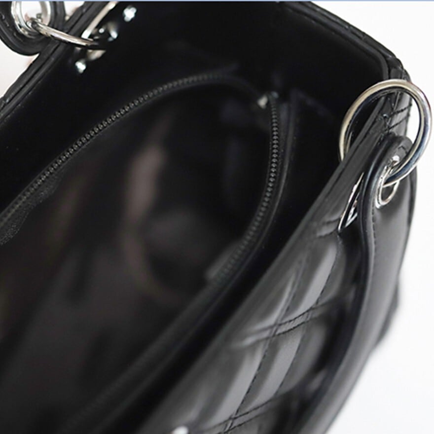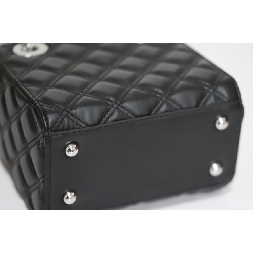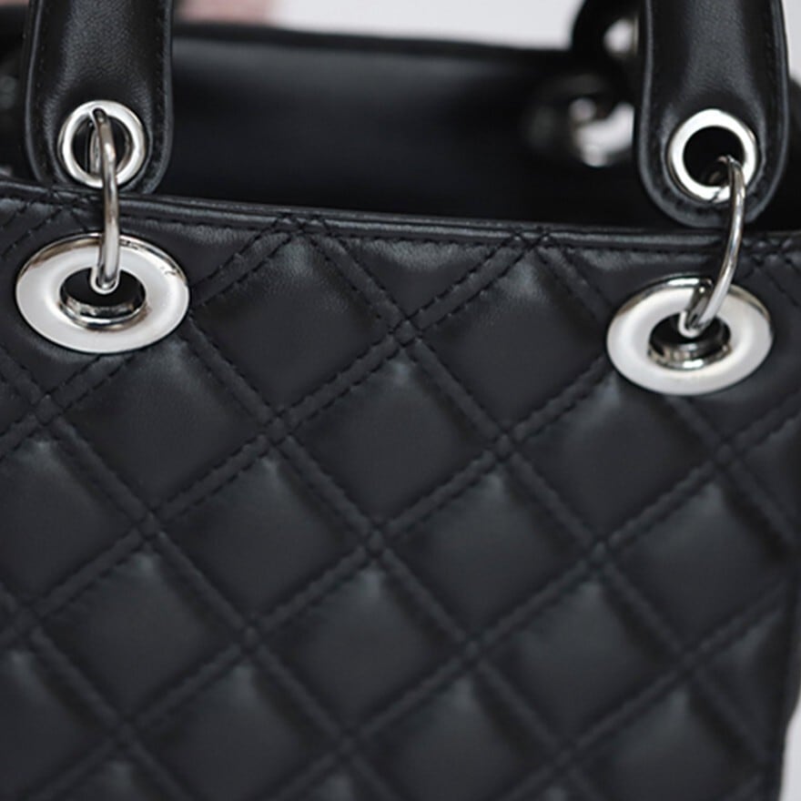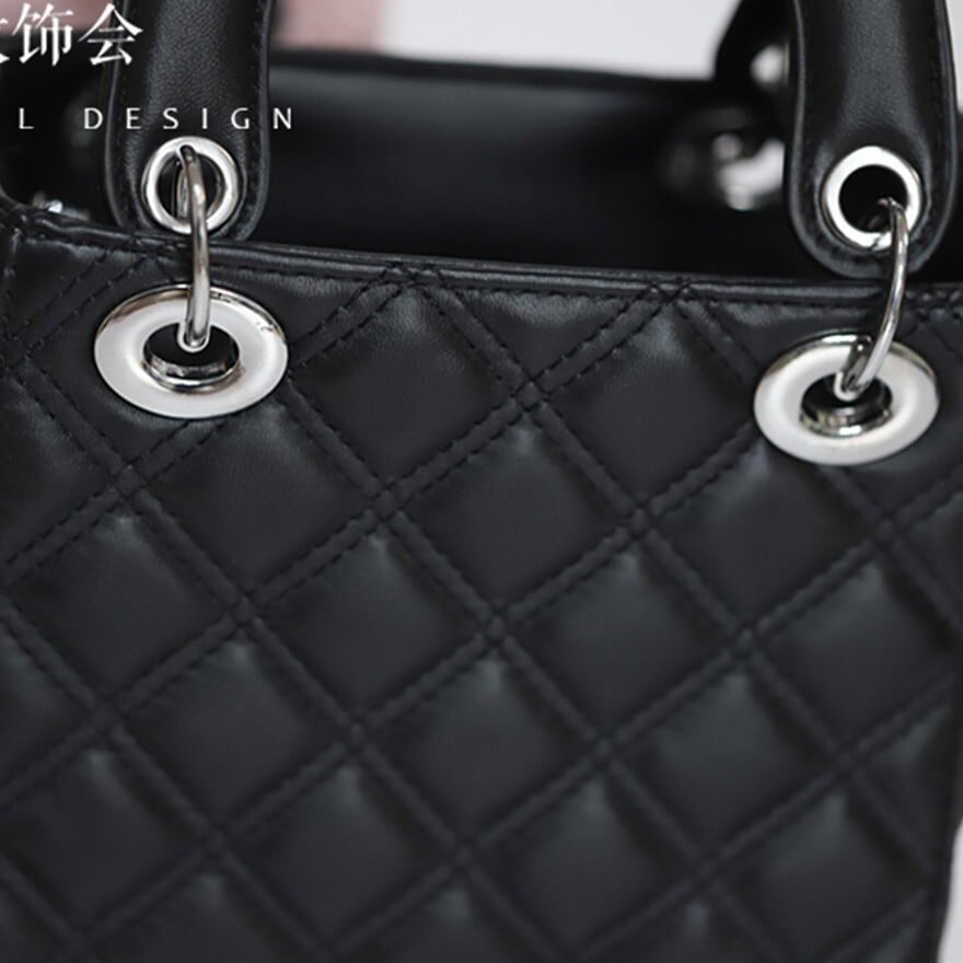 キルティング加工が施されたフェイクレザー製のミニハンドバッグです。ブラックとベビーピンクの2色展開で、どちらも上品な雰囲気を醸し出します。