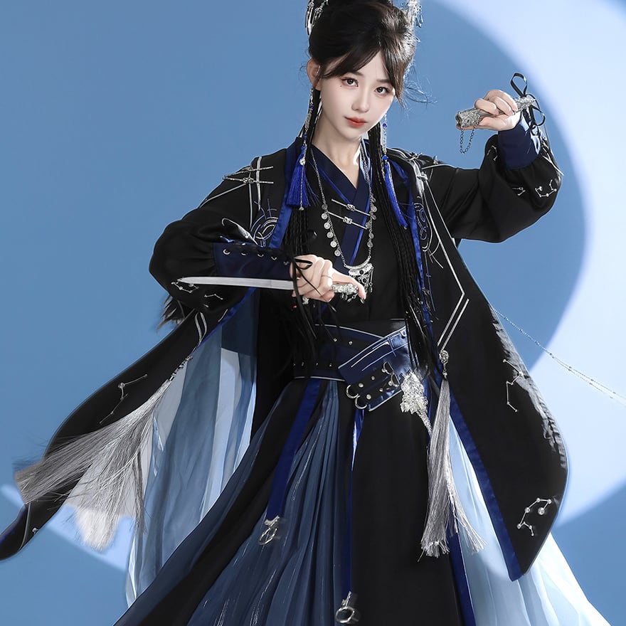 関連キーワード: #中華風 #チャイナ #ファンタジー #セットアップ #コンカフェ衣装 #舞台衣装 #コスプレ #星空 #魔法使い #占星術師 #サブカルファッション