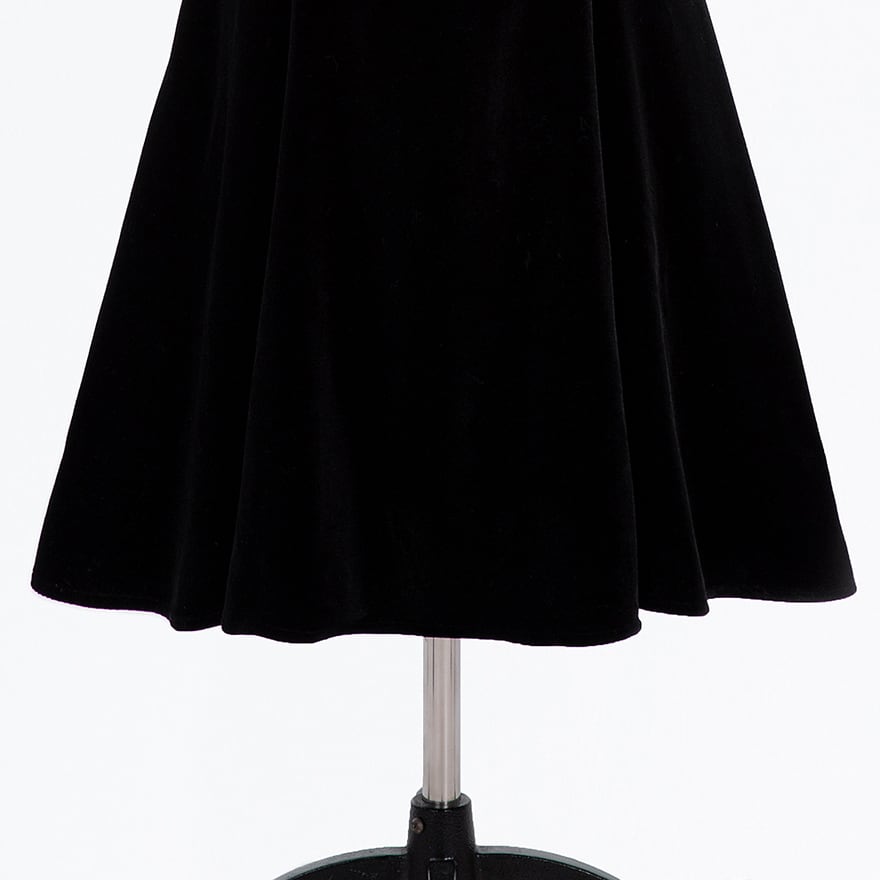 上品な光沢を持つブラックベルベット生地を使用した、ロング丈のワンピースです。