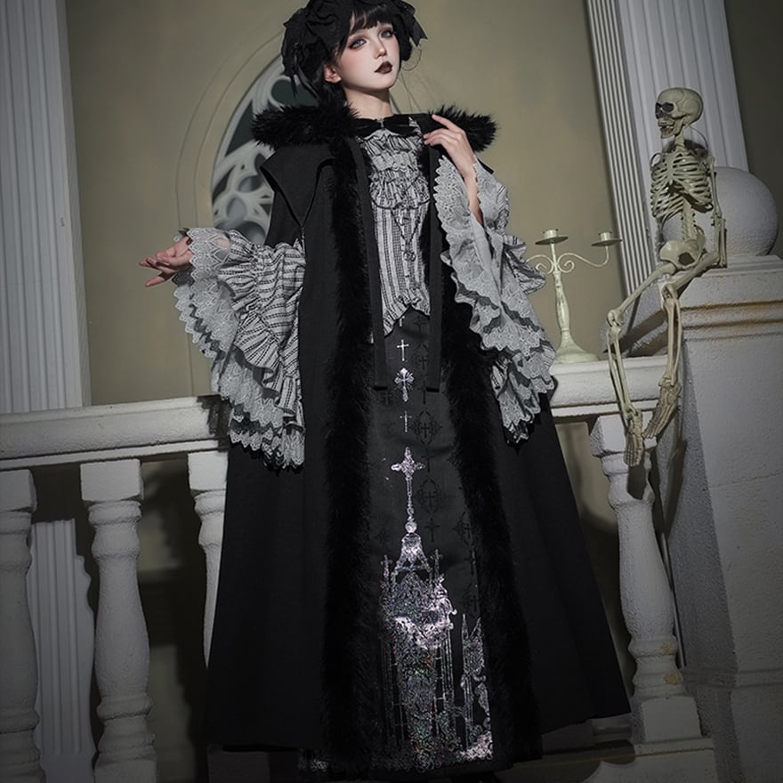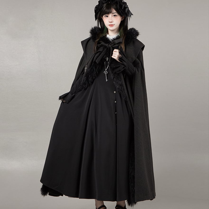 関連キーワード: #ゴスロリ #ロリータファッション #ケープ #マント #アウター #黒 #ファー #フード付き #ゴシック #闇かわいい #秋冬 #クラシカル #十字架