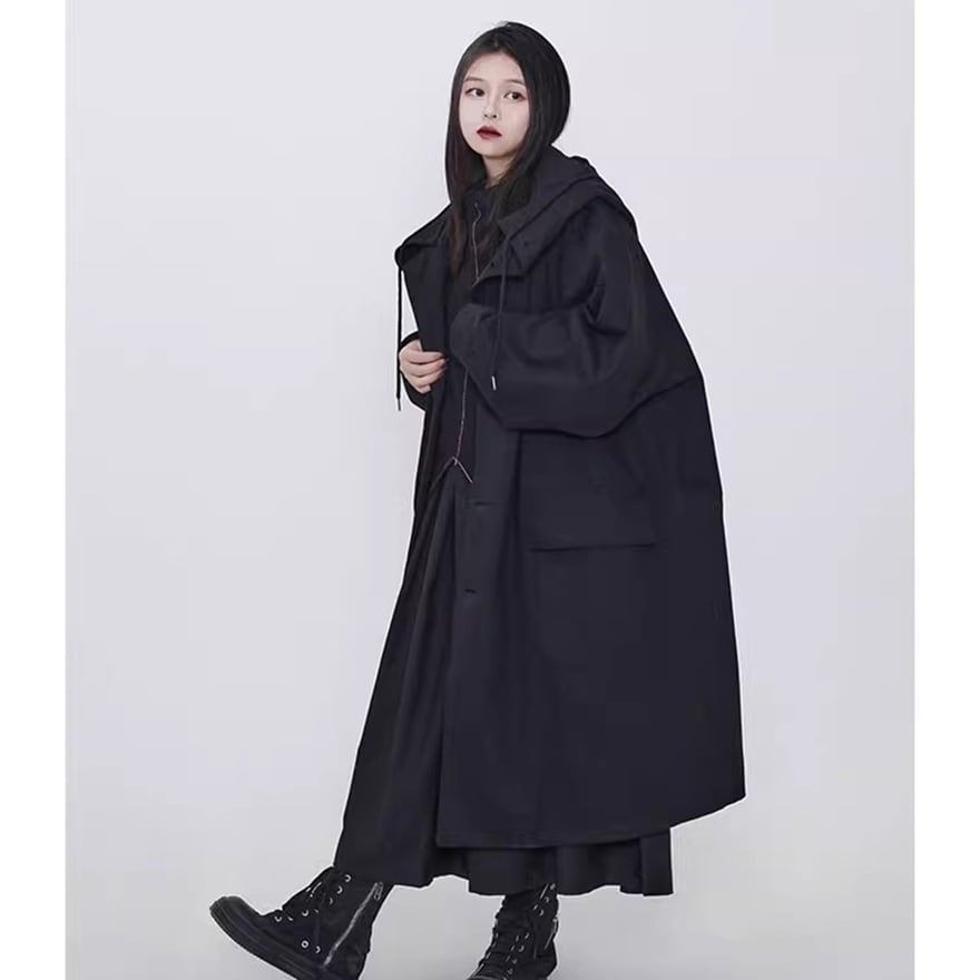 関連キーワード: #モード系 #ゴシック #アウター #コート #ロングコート #フード付き #オーバーサイズ #ビッグシルエット #黒 #オールブラック #個性的 #秋冬