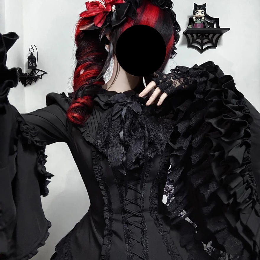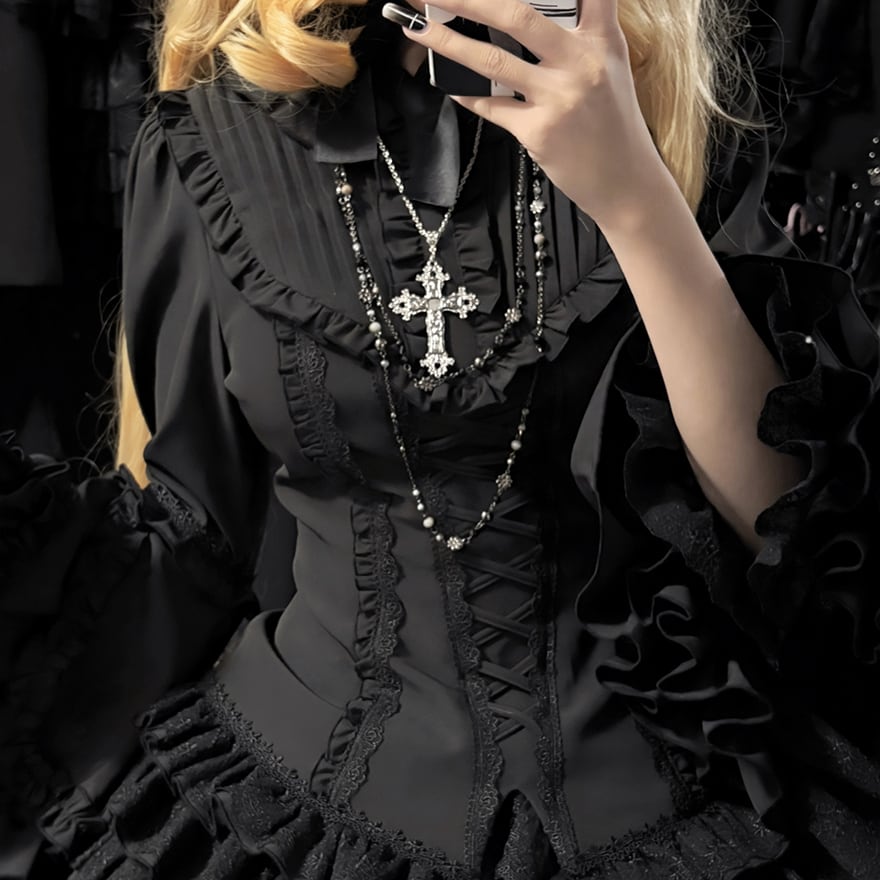 関連キーワード: #ゴスロリ #ゴシック #ロリータファッション #シャツ #ブラウス #姫袖 #レースアップ #フリル #黒 #貴族 #地雷系 #サブカル #闇かわいい