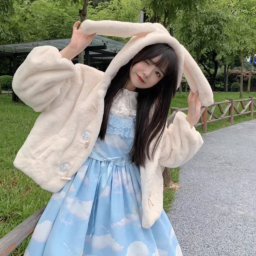 ゆめかわいい ロリータ ファーコート うさぎ耳 ふわふわ ジャケット