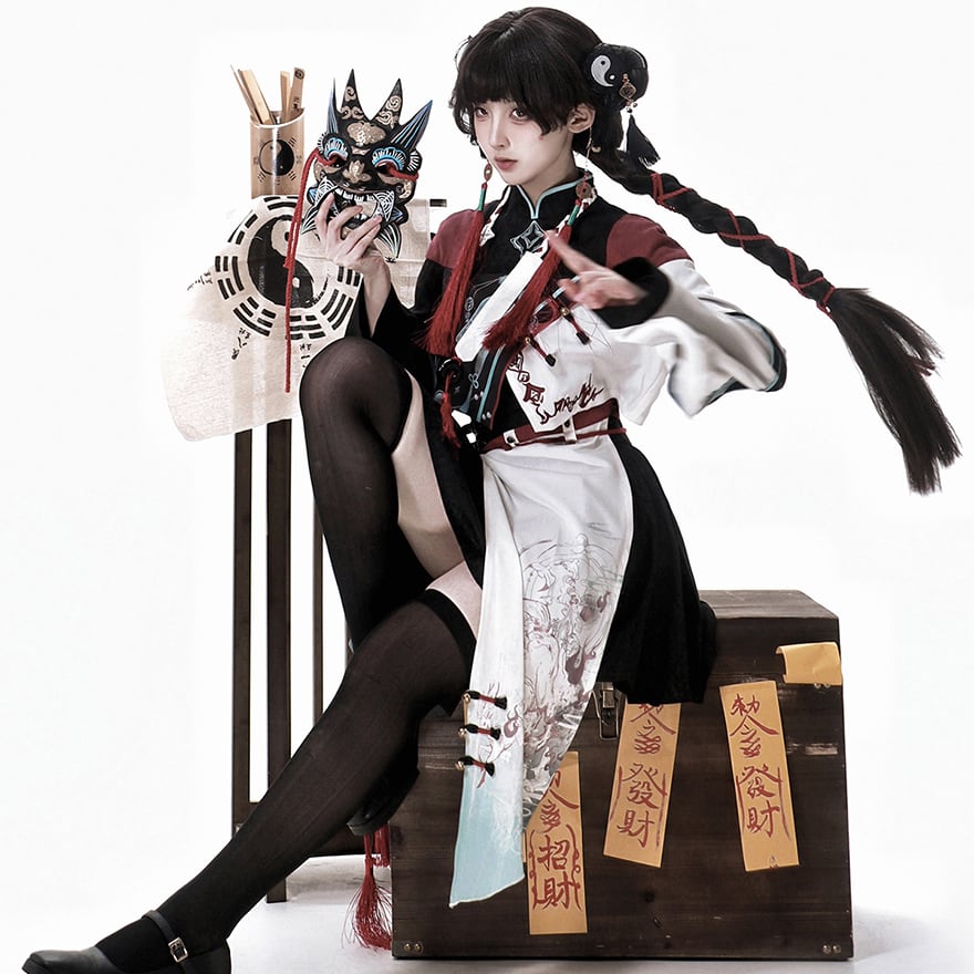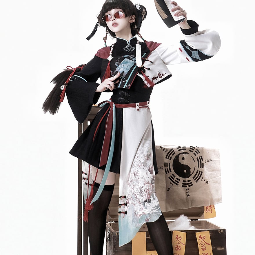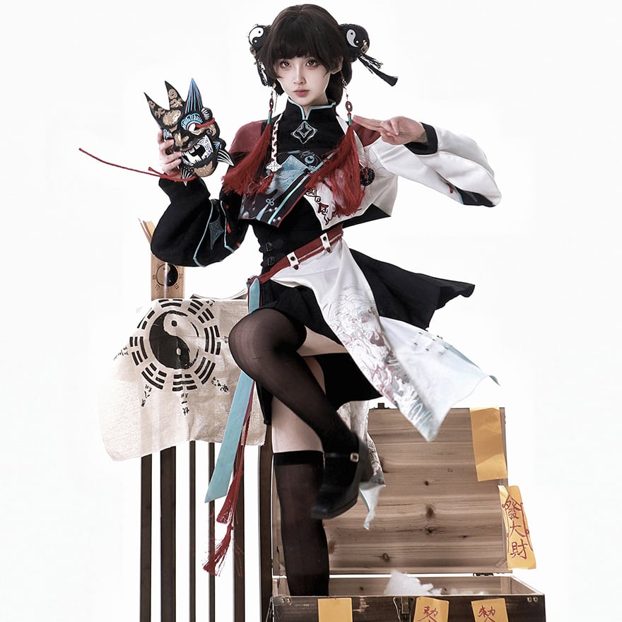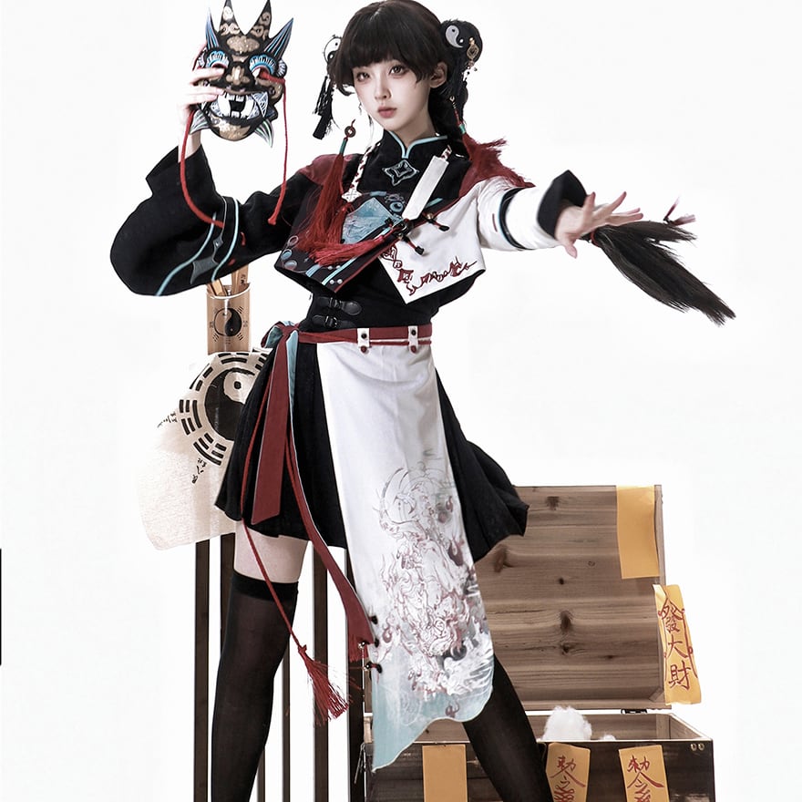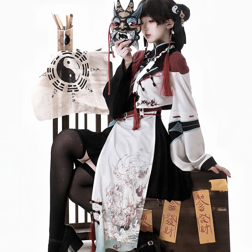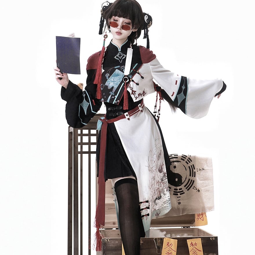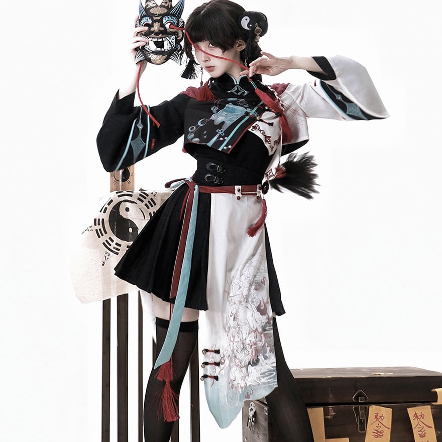 チャイナ風服 中華ファッション セットアップ 4点セット 民族調 パンク イベント衣装 ステージ ライブ衣装