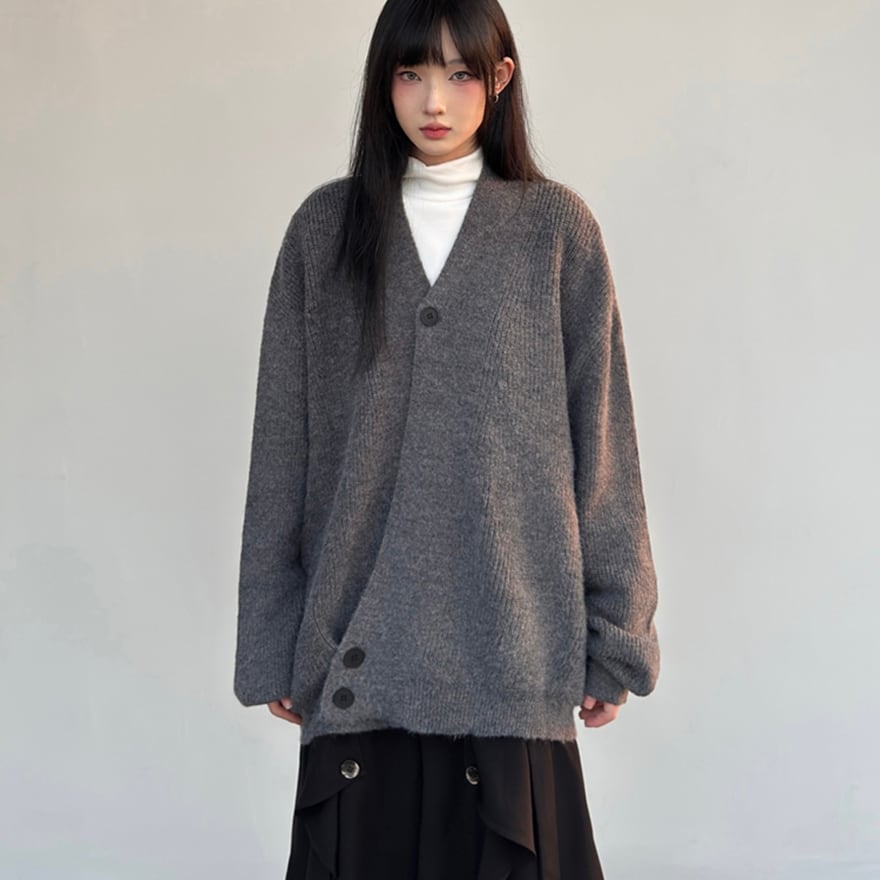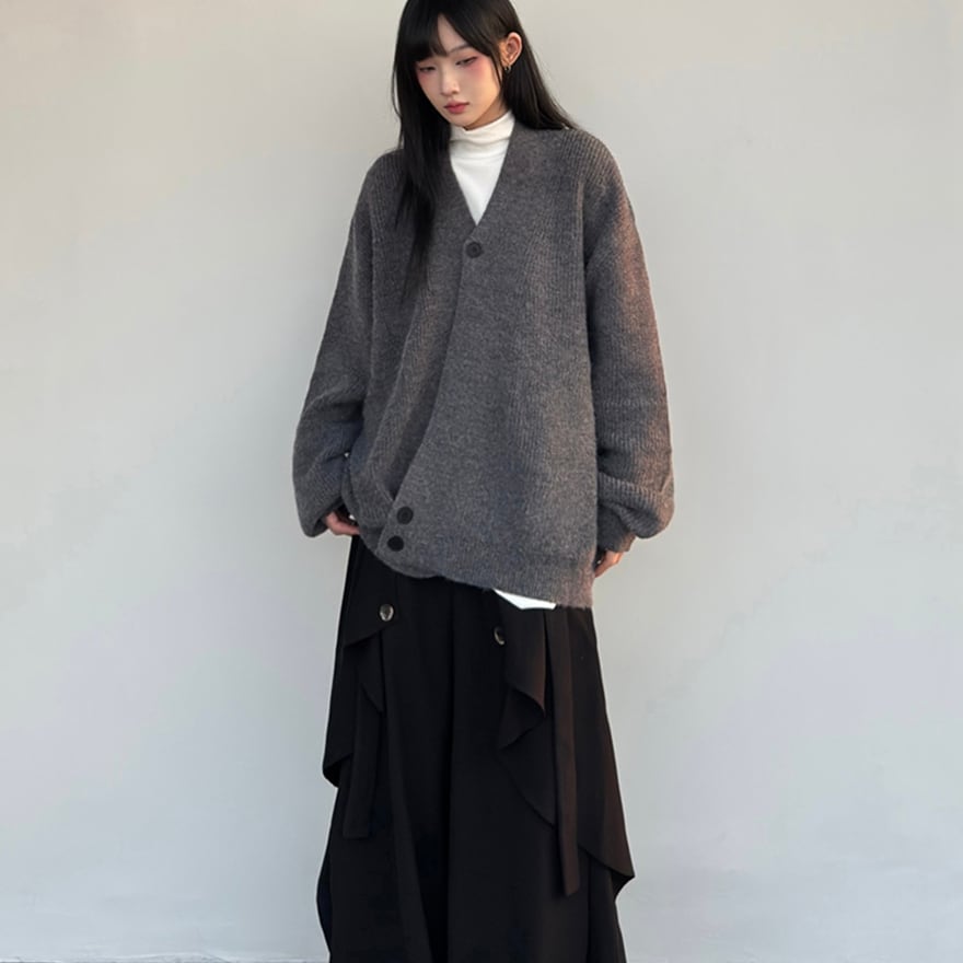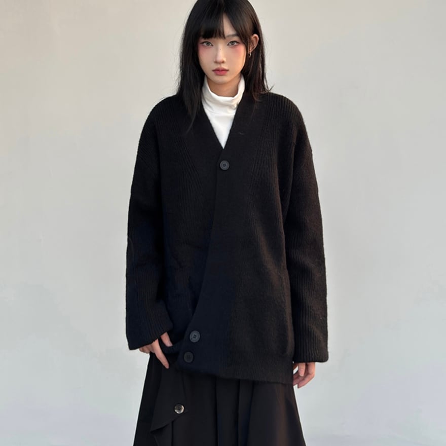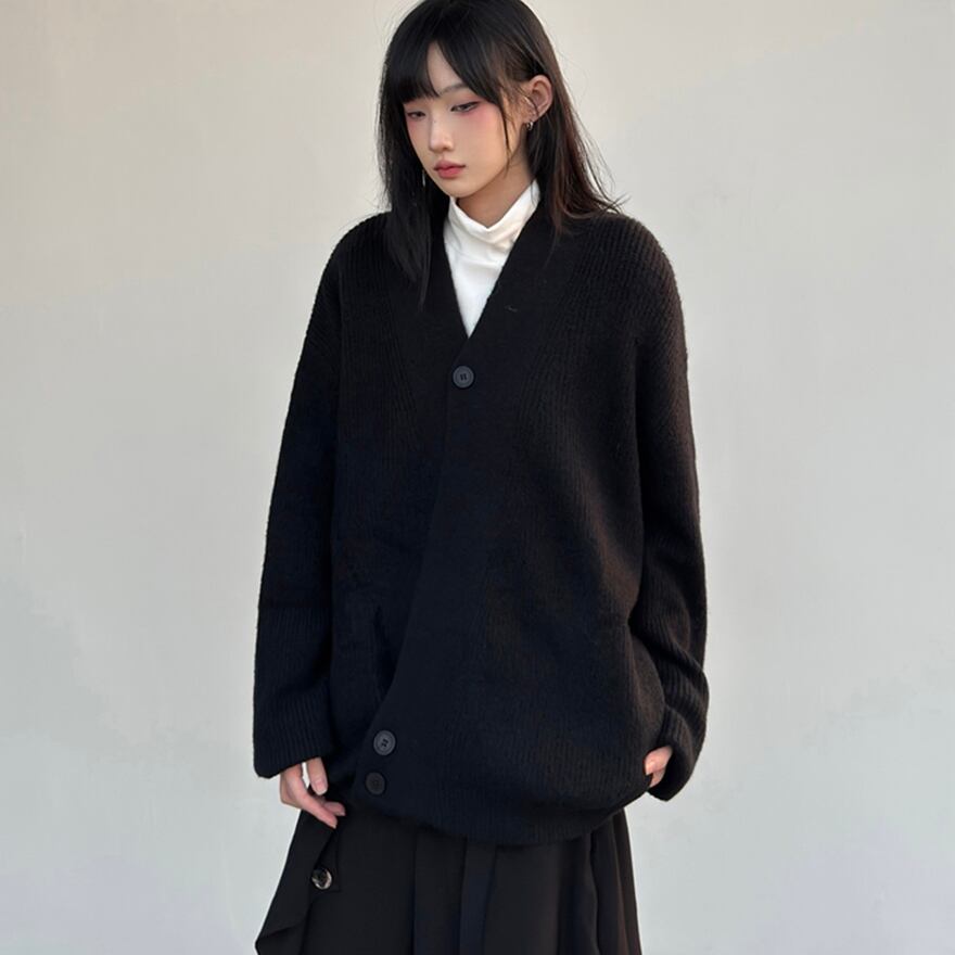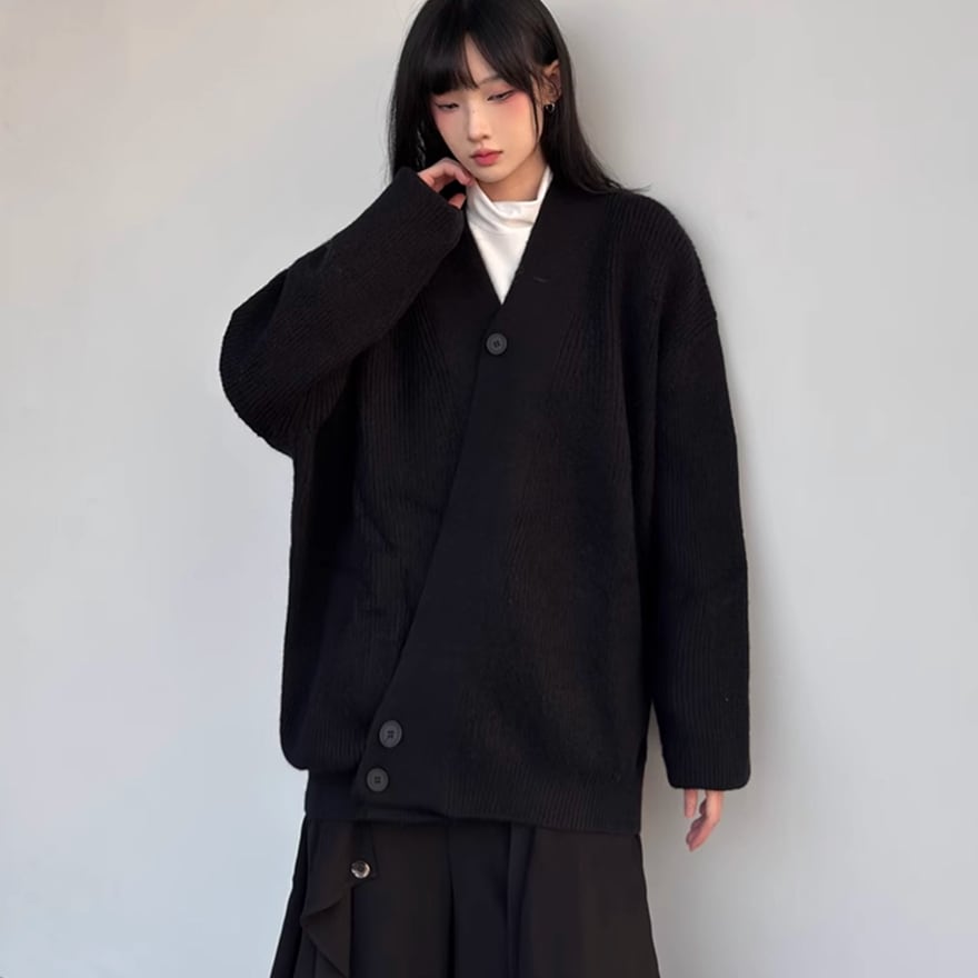関連キーワード: #ニット #カーディガン #秋冬 #アシンメトリー #オーバーサイズ #ビッグシルエット #モード系 #カジュアル #普段着 #無地 #シンプル