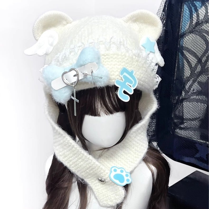 【即納】天使界隈 ニット帽 レース 水色ロリィタ サブカルチャー