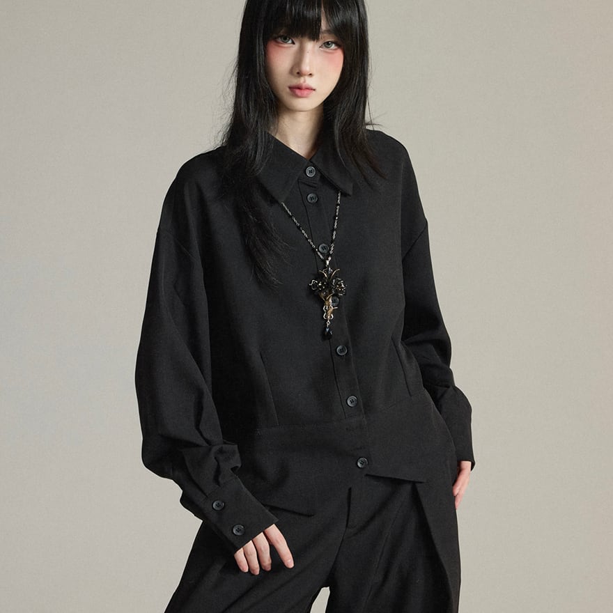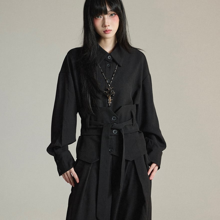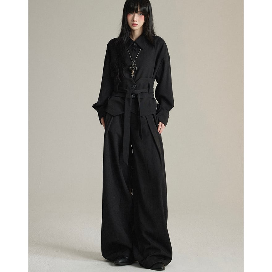 関連キーワード: #ゴスロリ #モード系 #セットアップ #パンツスタイル #ワイドパンツ #マニッシュ #ジェンダーレス #ストリートファッション #黒 #個性的 #秋冬 #ベルト付き