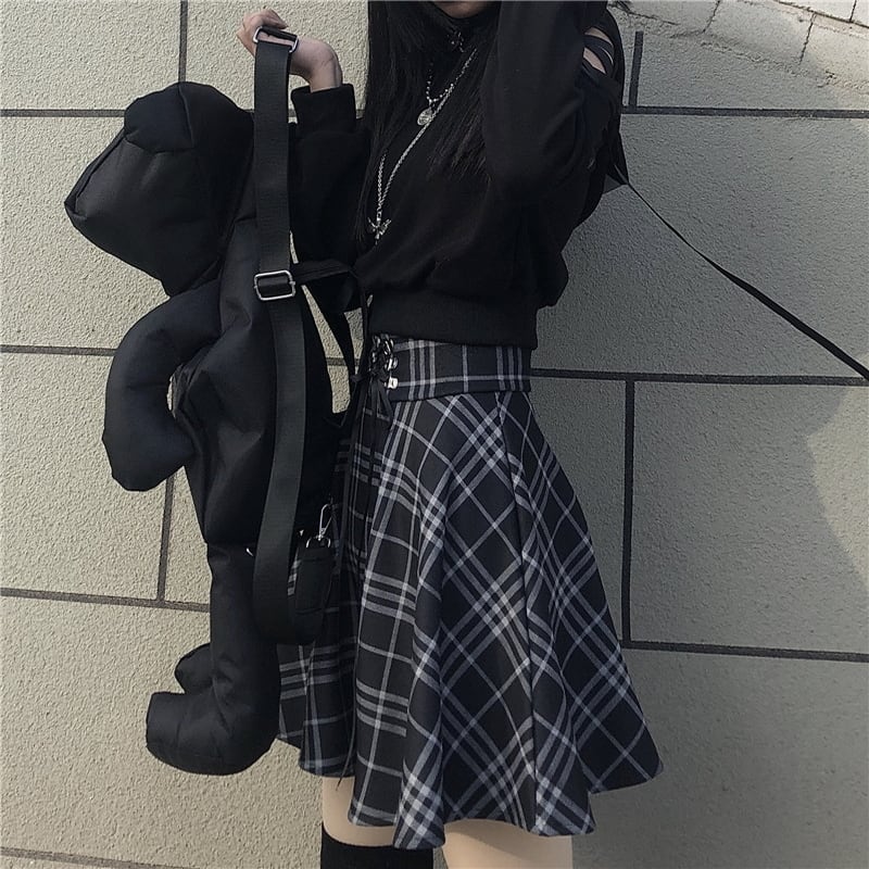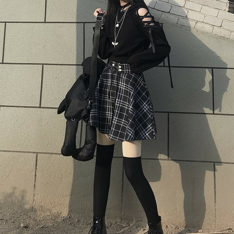 ニーハイソックス、厚底靴のストリート系、JKスタイルコーデにも使い回せる定番のチェック柄