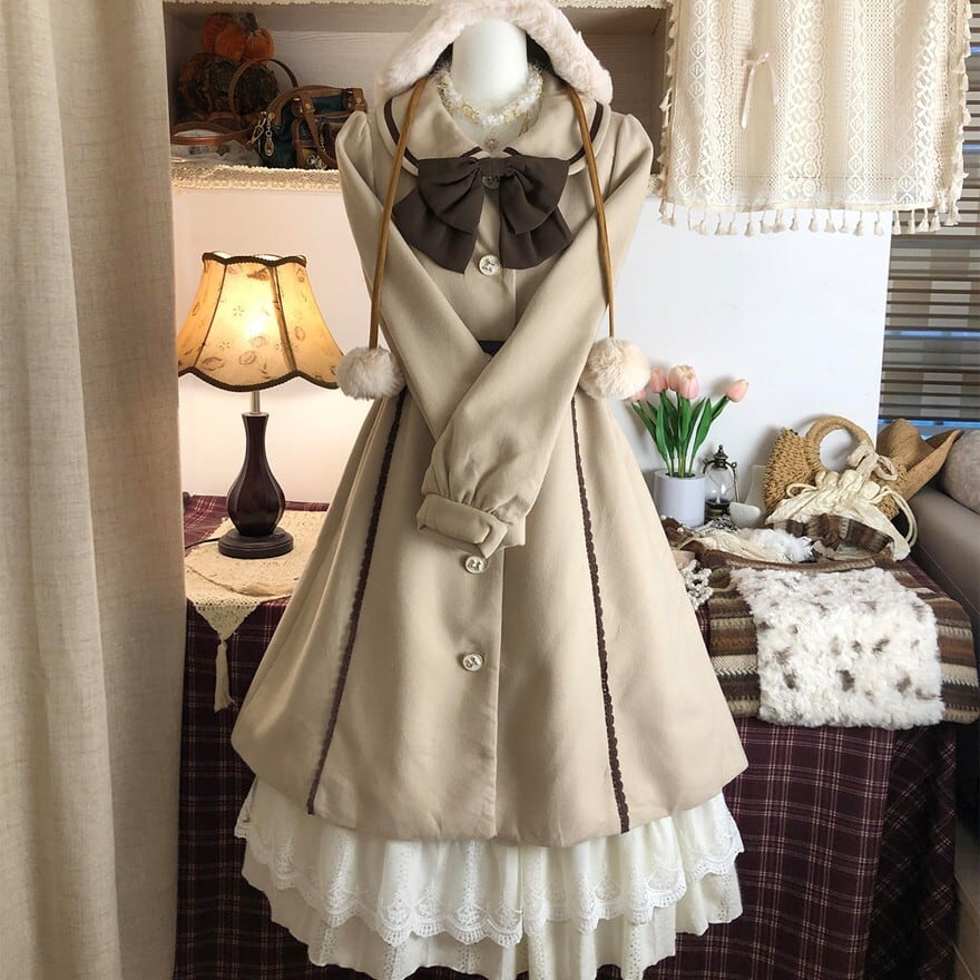 関連キーワード: #ロリータ #クラロリ #コート #ウールコート #ファー #ベージュ #ブラウン #可愛い #ドーリー #クラシカル