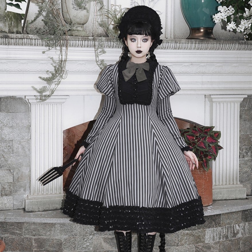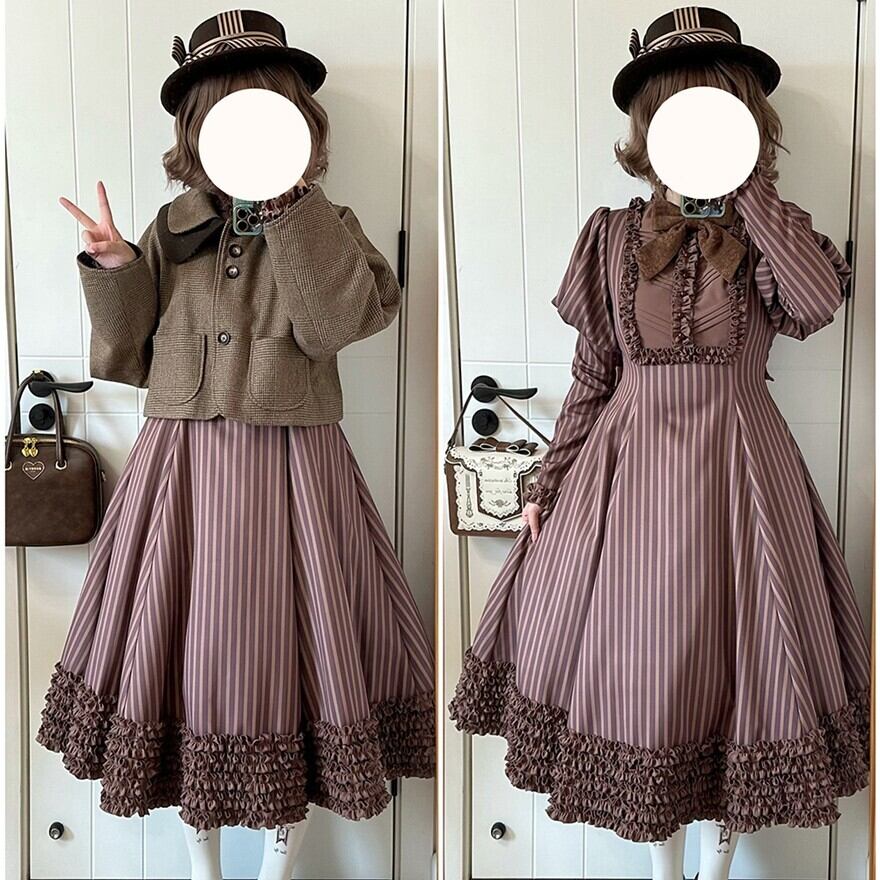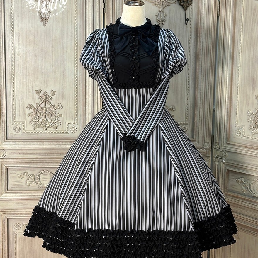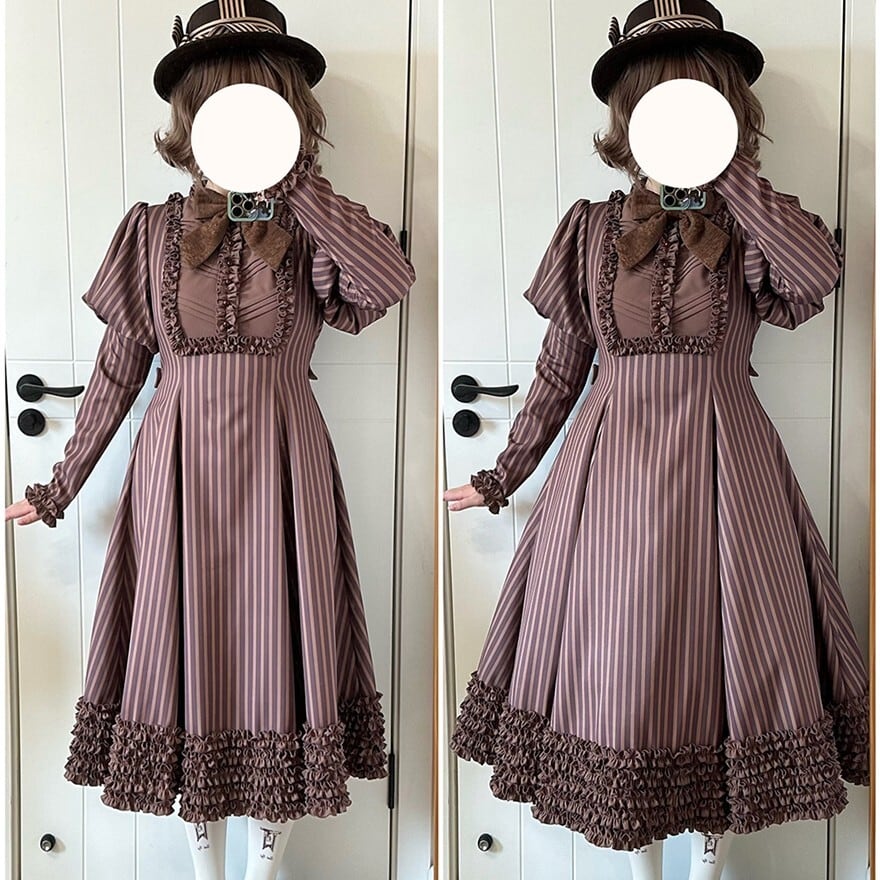 関連キーワード: #ロリータ #クラロリ #ワンピース #ストライプ #フリル #エレガント #シック #可愛い #ドーリー #長袖