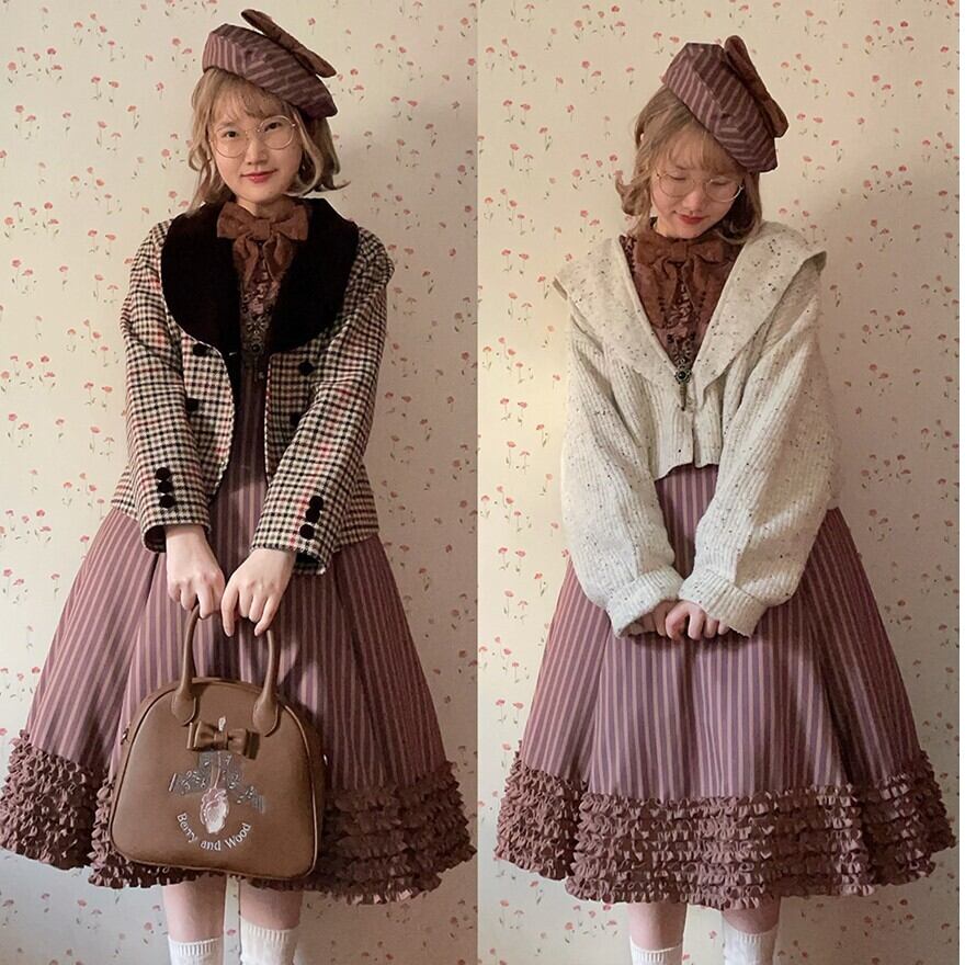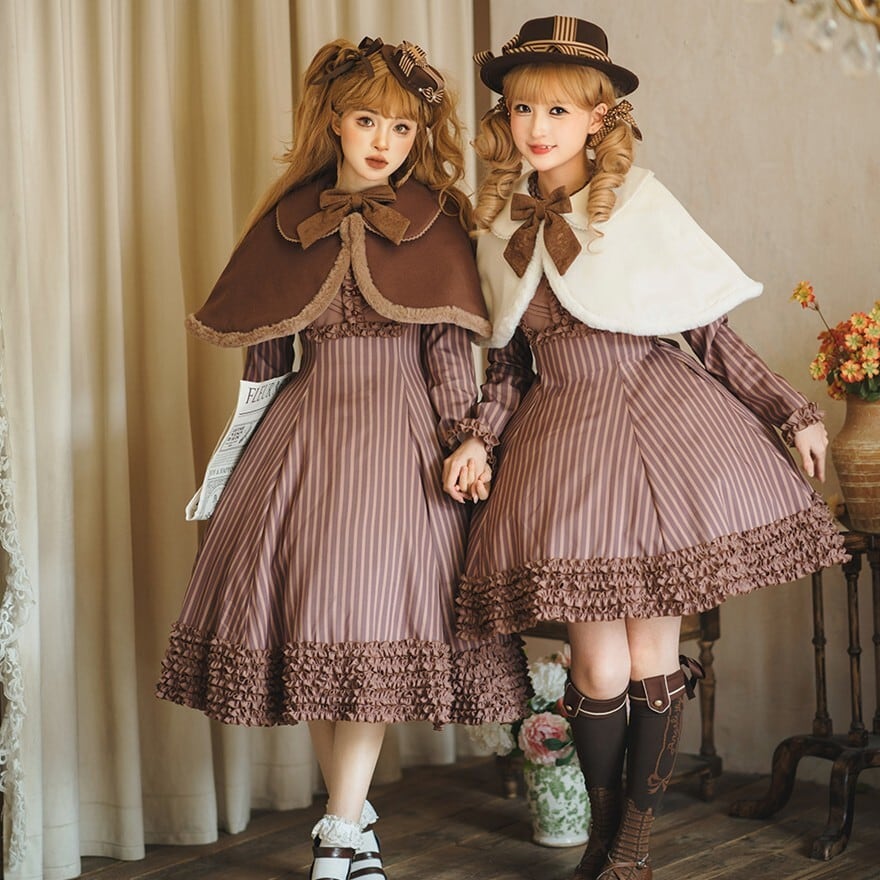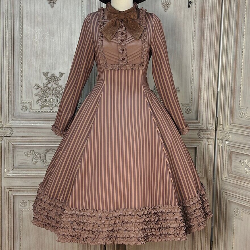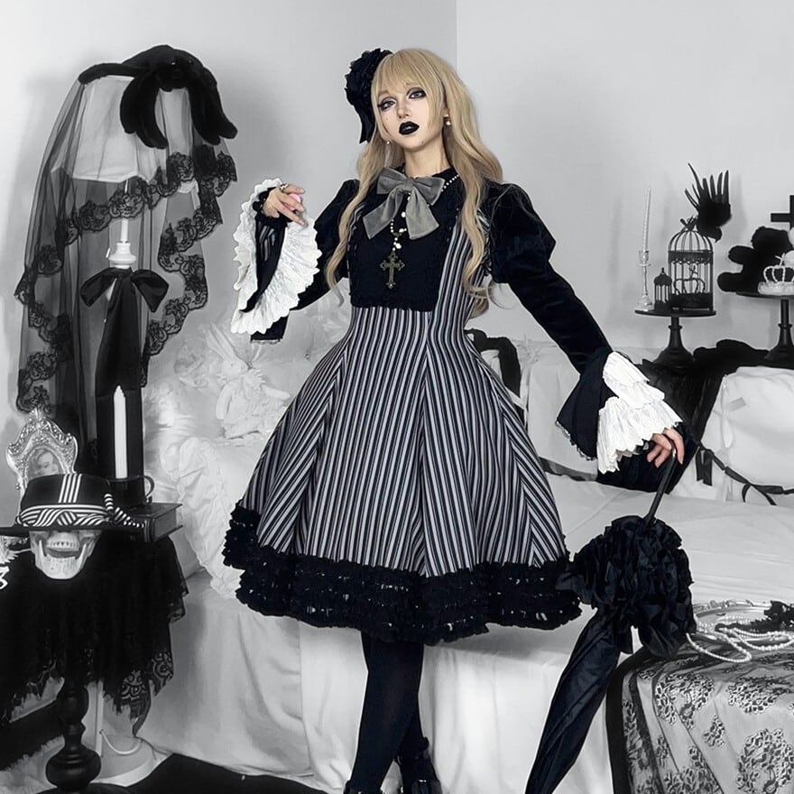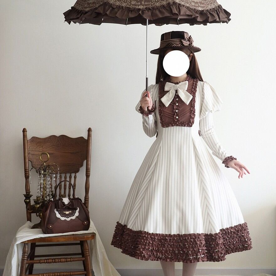 関連キーワード: #ロリータ #クラロリ #ワンピース #ストライプ #フリル #エレガント #シック #可愛い #ドーリー #長袖