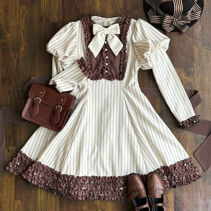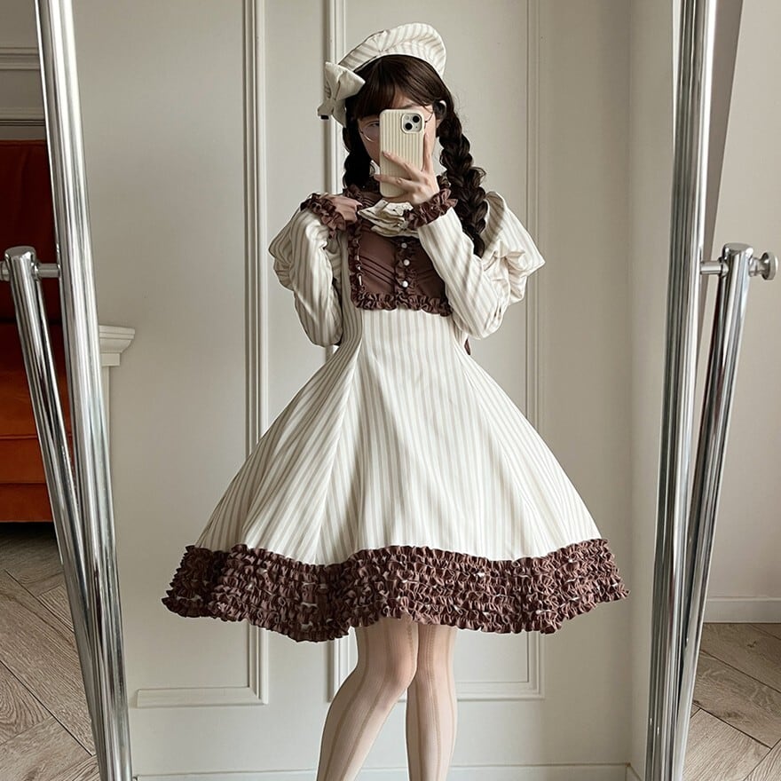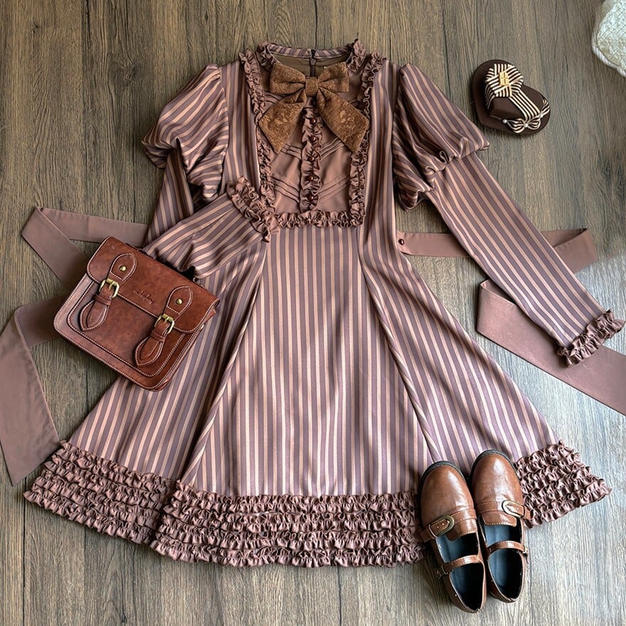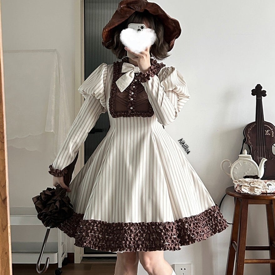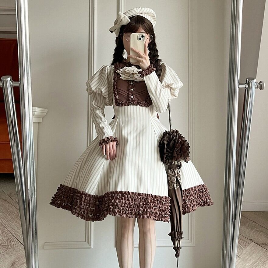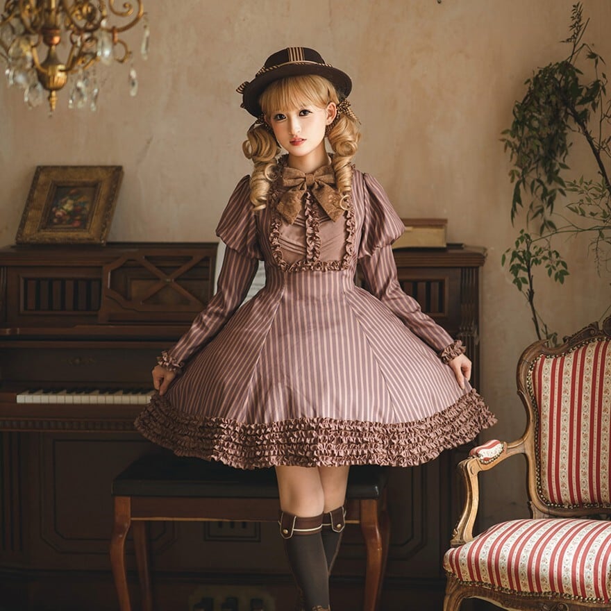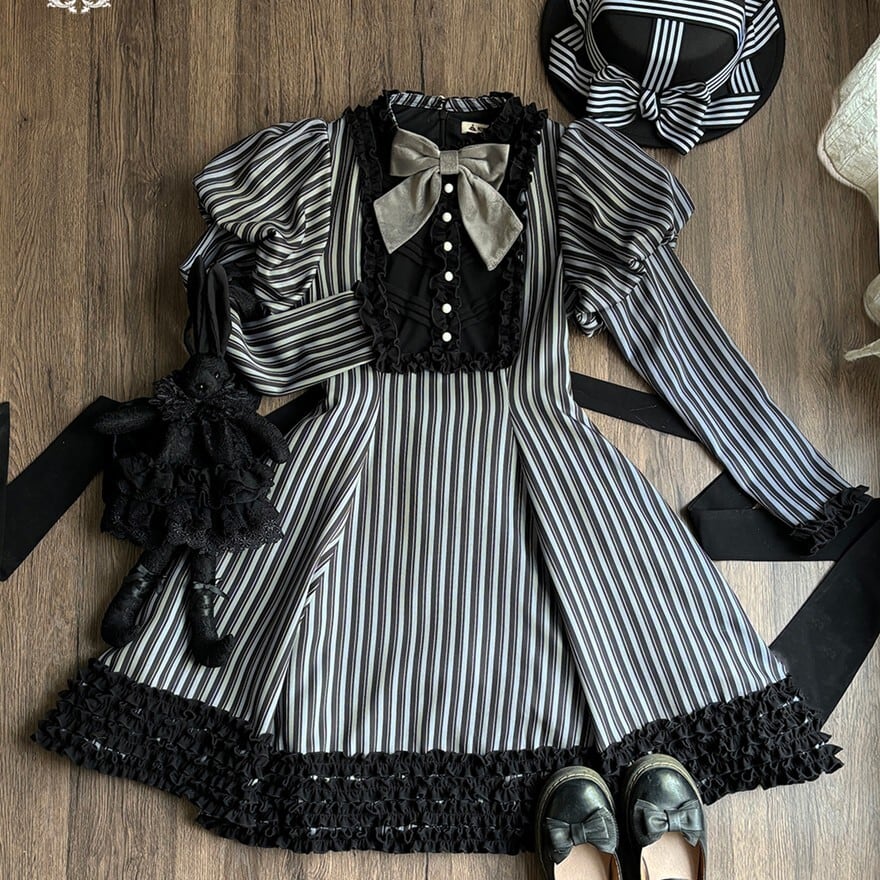 関連キーワード: #ロリータ #クラロリ #ワンピース #ストライプ #レトロ #エレガント #シック #可愛い