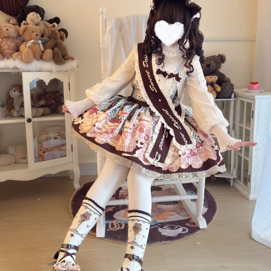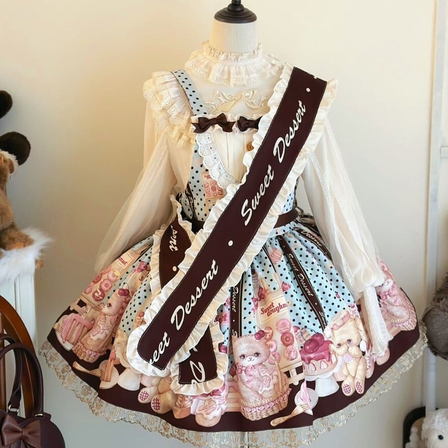 関連キーワード: #ロリータ #甘ロリ #ジャンパースカート #サッシュベルト #タスキ #可愛い #ドーリー #お菓子柄 #スイーツ