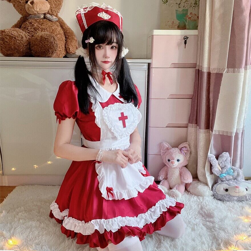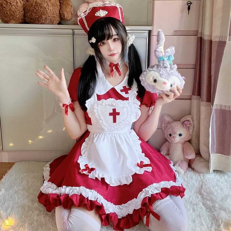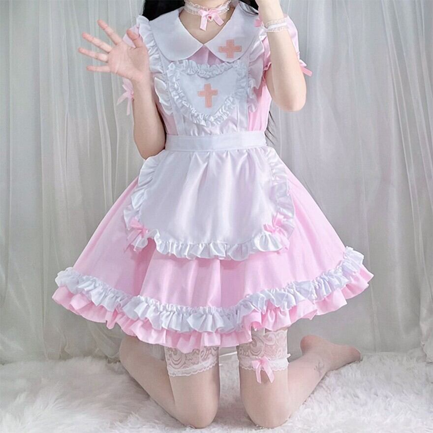 関連キーワード: #ロリータ #ナースロリ #メイド風 #ワンピース #コスプレ #フルセット #可愛い #フリル #パステル