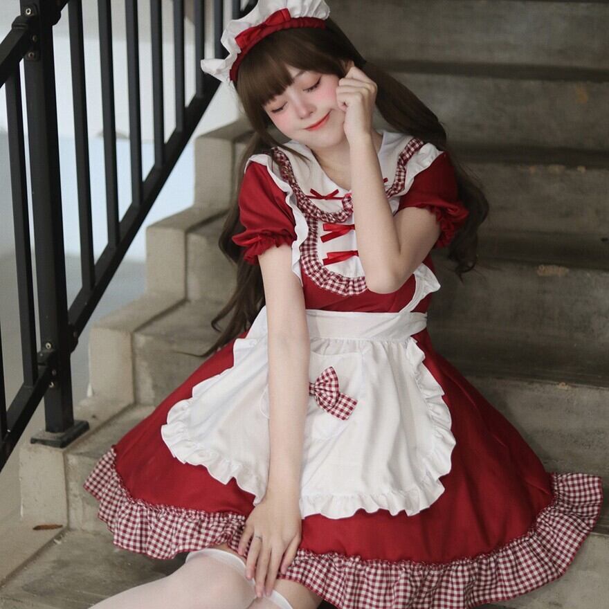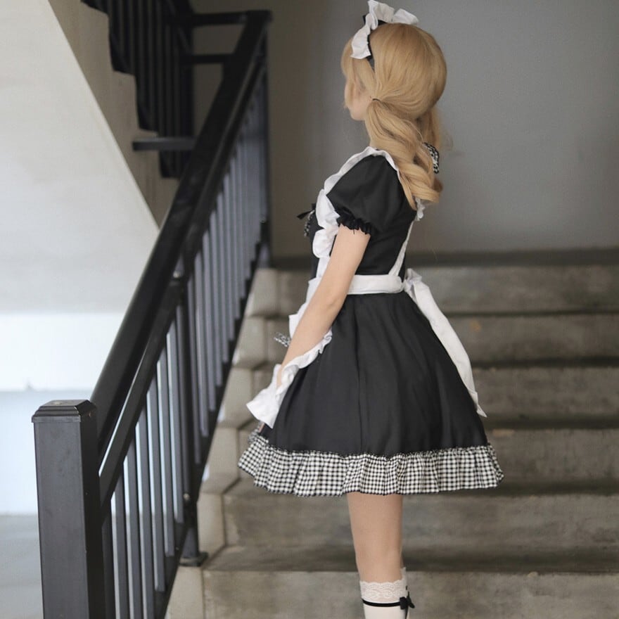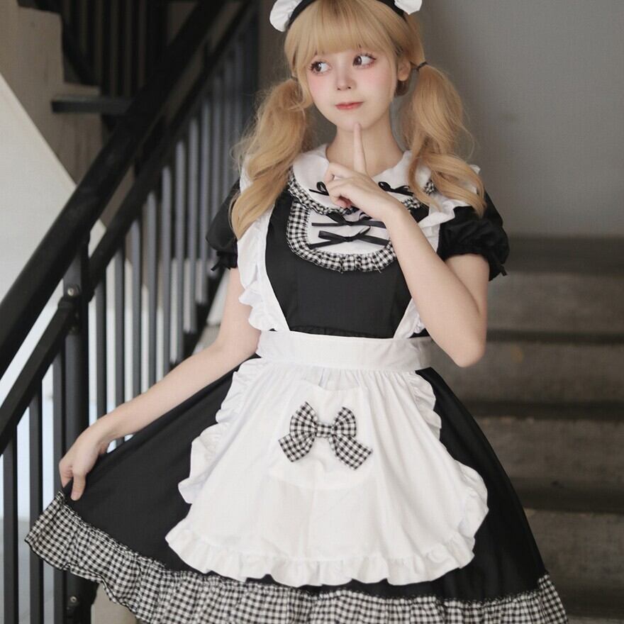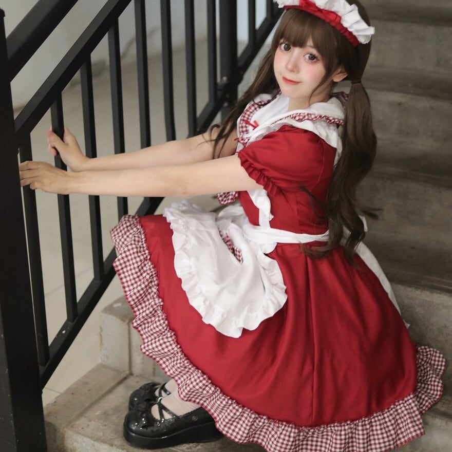 コスプレ メイドワンピ チェック柄 コンカフェキャスト衣装 クリスマスパーティ イベント衣装