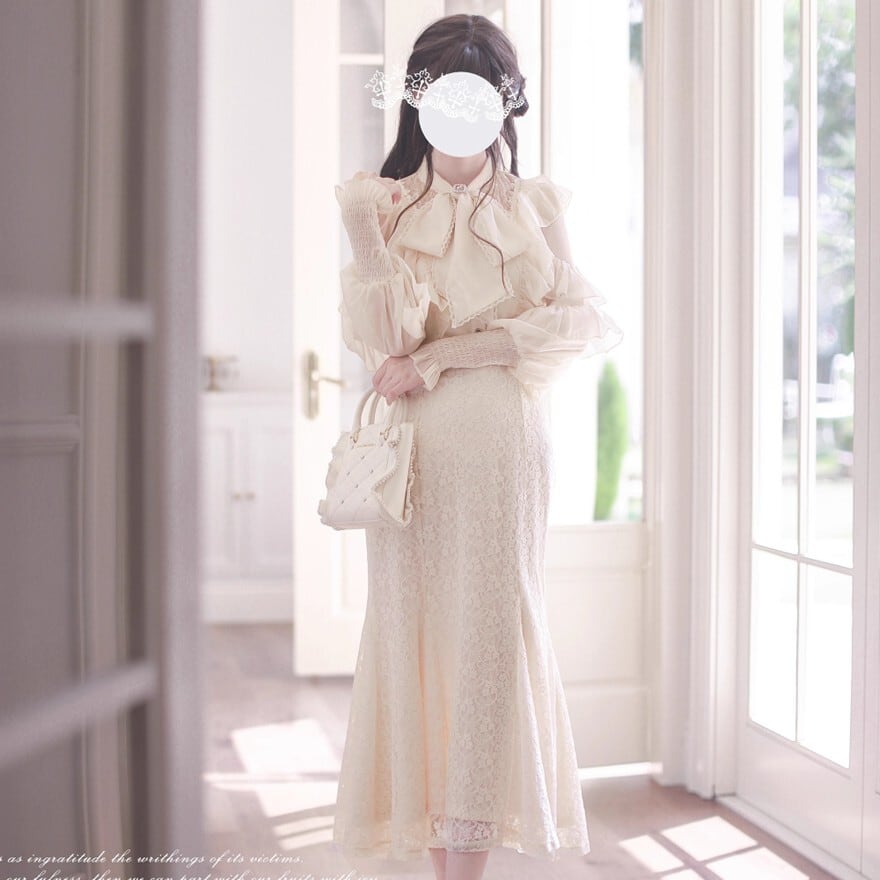 関連キーワード: #ロリータ #クラロリ #ブラウス #レース #リボンタイ #エレガント #シック #可愛い