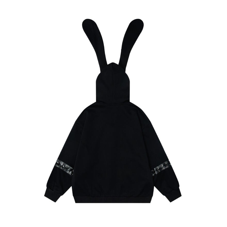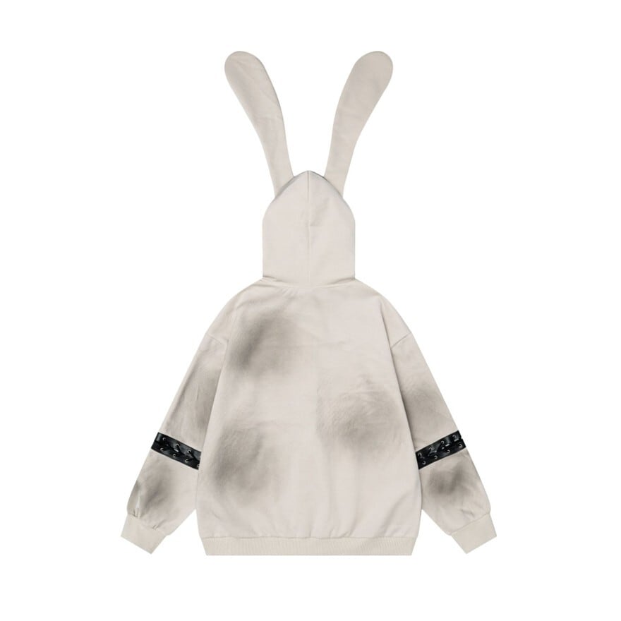 フードに付いた特大のうさ耳が目を引く、オーバーサイズのジップアップパーカーです。