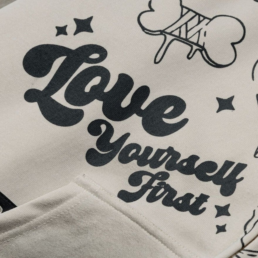 胸元には、地雷系ファッションで人気の「病み可愛い」アニメ調のプリントや、星、足跡などのモチーフが大きくデザインされています。