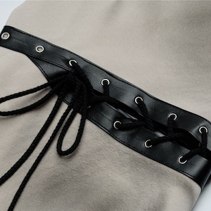 袖には合皮のベルトやポケット風の装飾があり、細部までこだわりを感じるパンクな要素が取り入れられています。