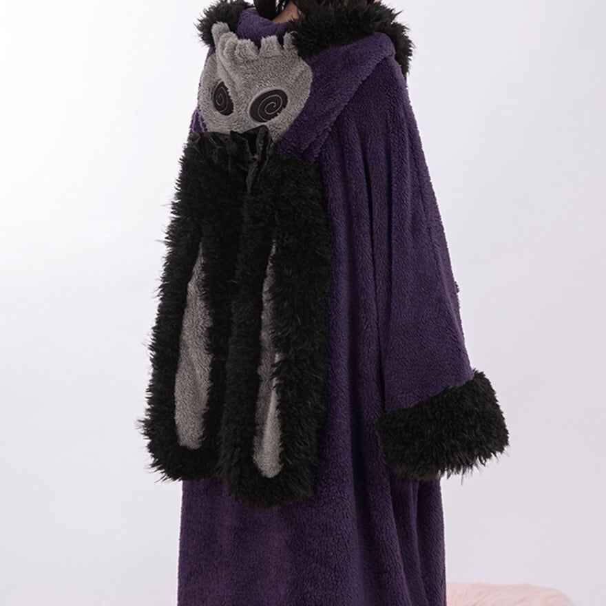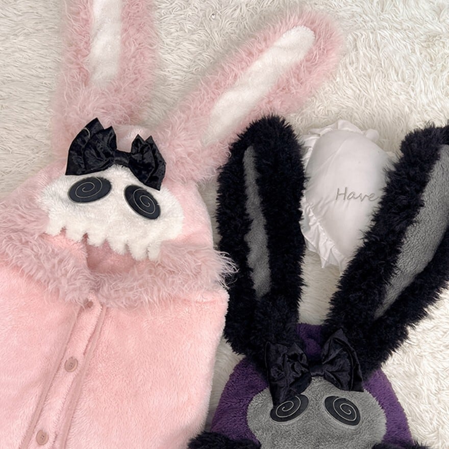 まるでぬいぐるみのようなふわふわもこもこの手触りで、見た目にも着心地にも癒やしと暖かさを与えてくれるコートです。長いウサギ耳とファーが、どこにいても注目の的となること間違いなし!