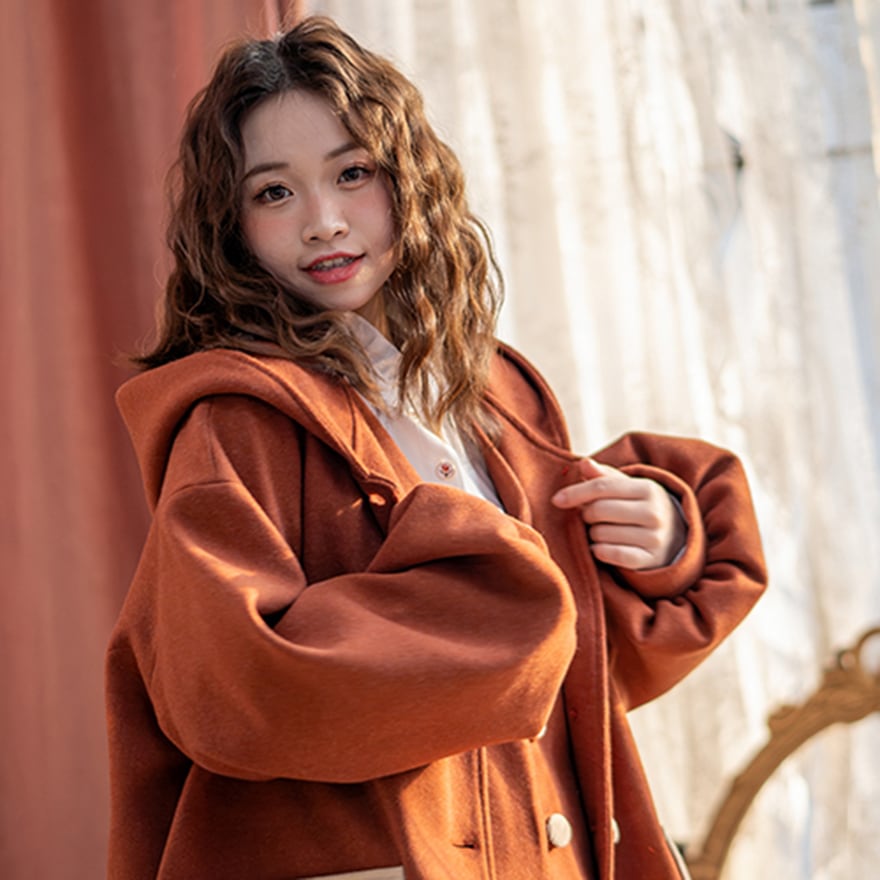 関連キーワード: #セミロリ #森ガール #ジャケット #フード付き #テラコッタ #レトロ #アウター #秋冬コーデ #カジュアルロリータ #ボリューム袖