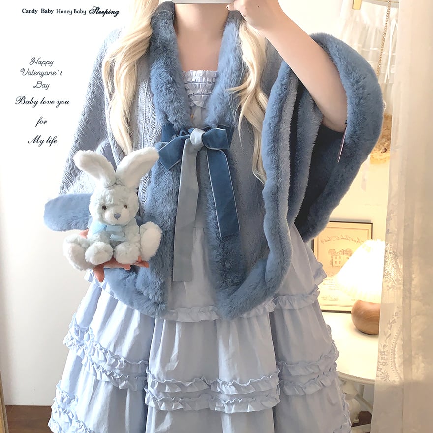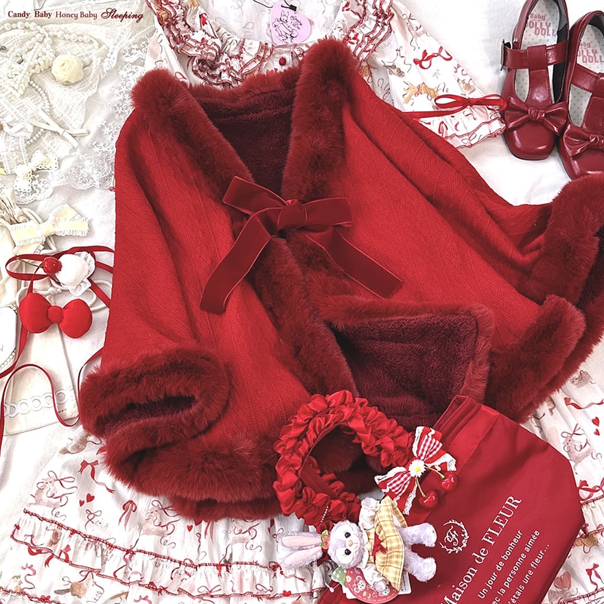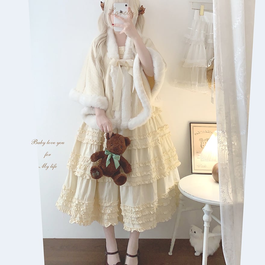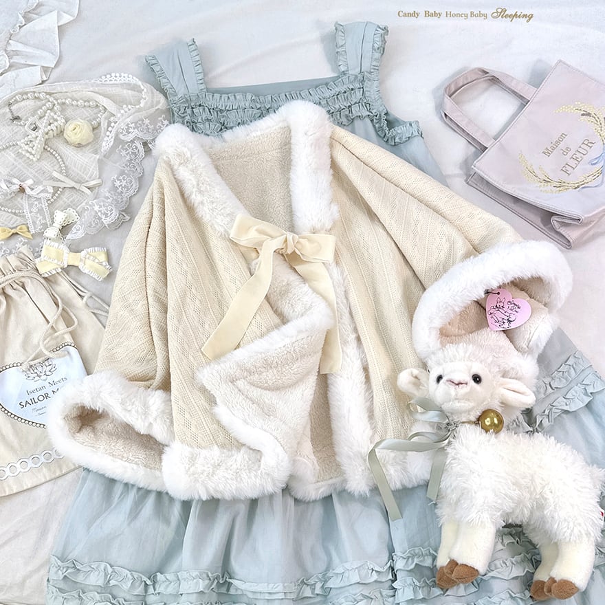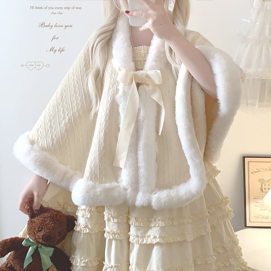 関連キーワード: #セミロリ #ポンチョ #ケープ #フェイクファー #リボン #裏起毛 #防寒 #ガーリー #推し活 #冬コーデ