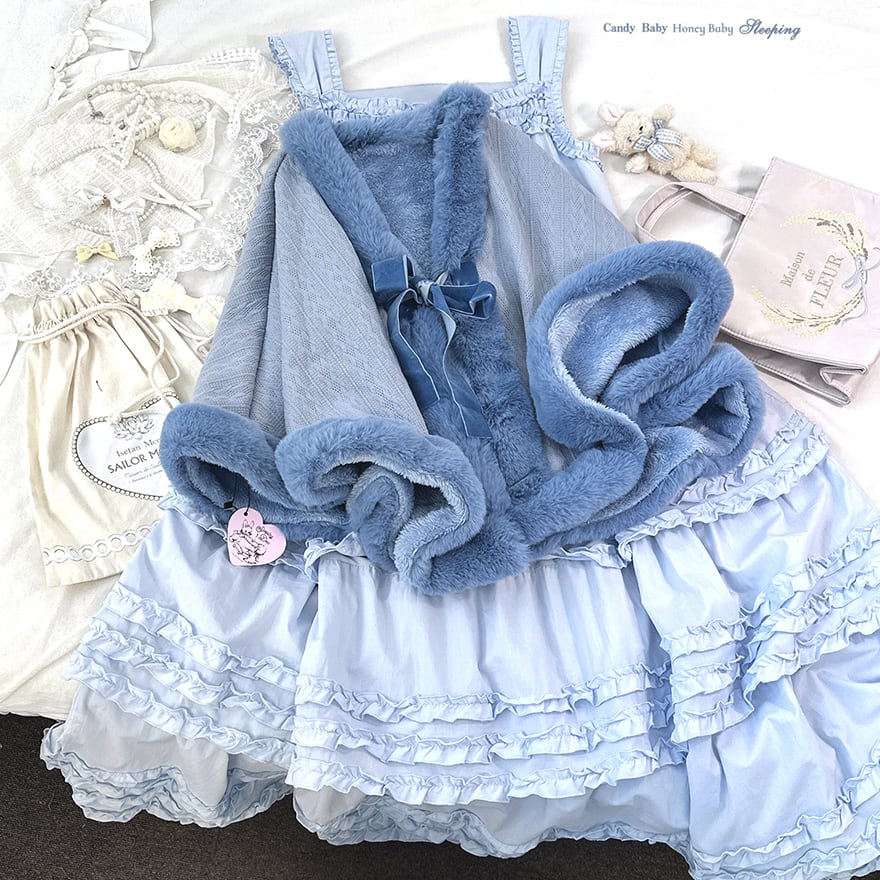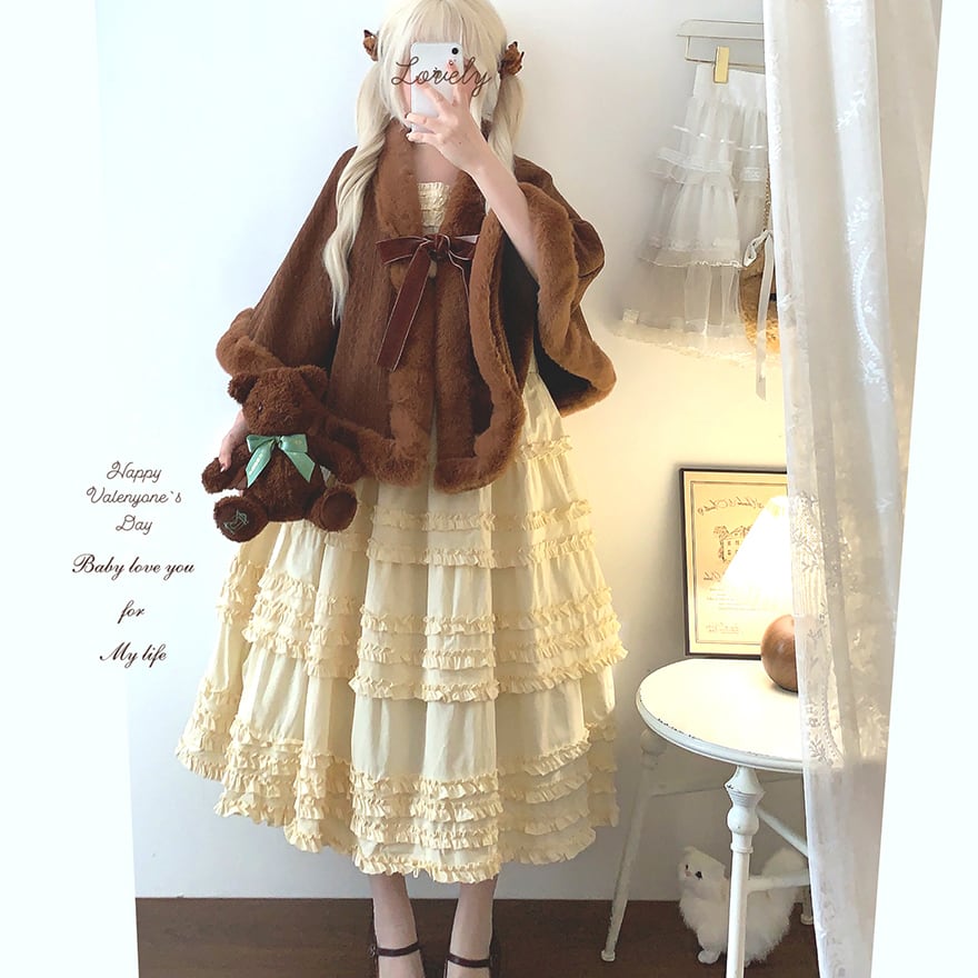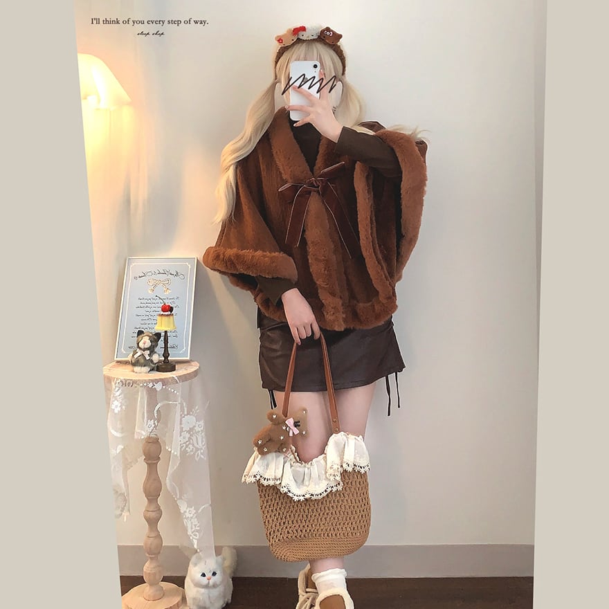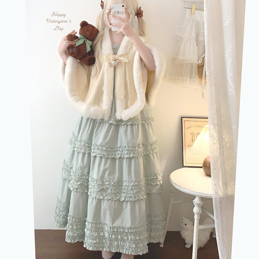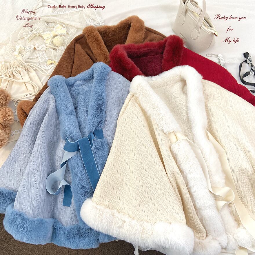関連キーワード: #セミロリ #ポンチョ #ケープ #フェイクファー #リボン #裏起毛 #防寒 #ガーリー #推し活 #冬コーデ