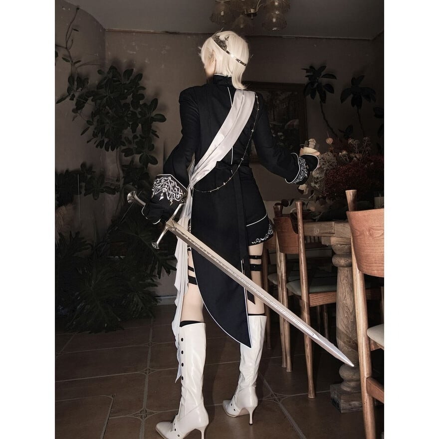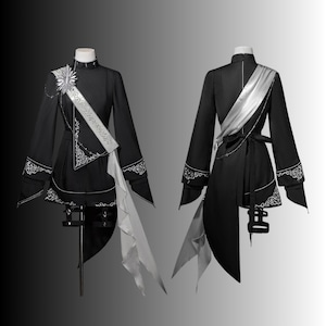 高品質な刺繍: ジャケットやパンツの裾、袖口などに施されたシルバーの刺繍は、単調になりがちな黒の生地に奥行きと輝きを与え、高貴な印象を深めます。