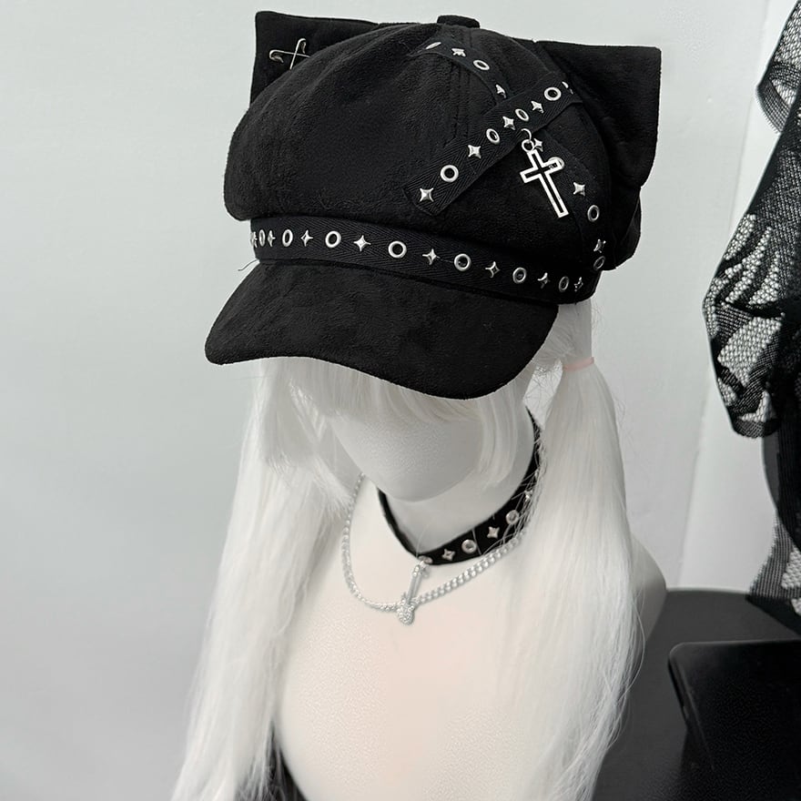 被るだけでコーディネート全体が引き締まり、「強め」な地雷系スタイルが完成します。
