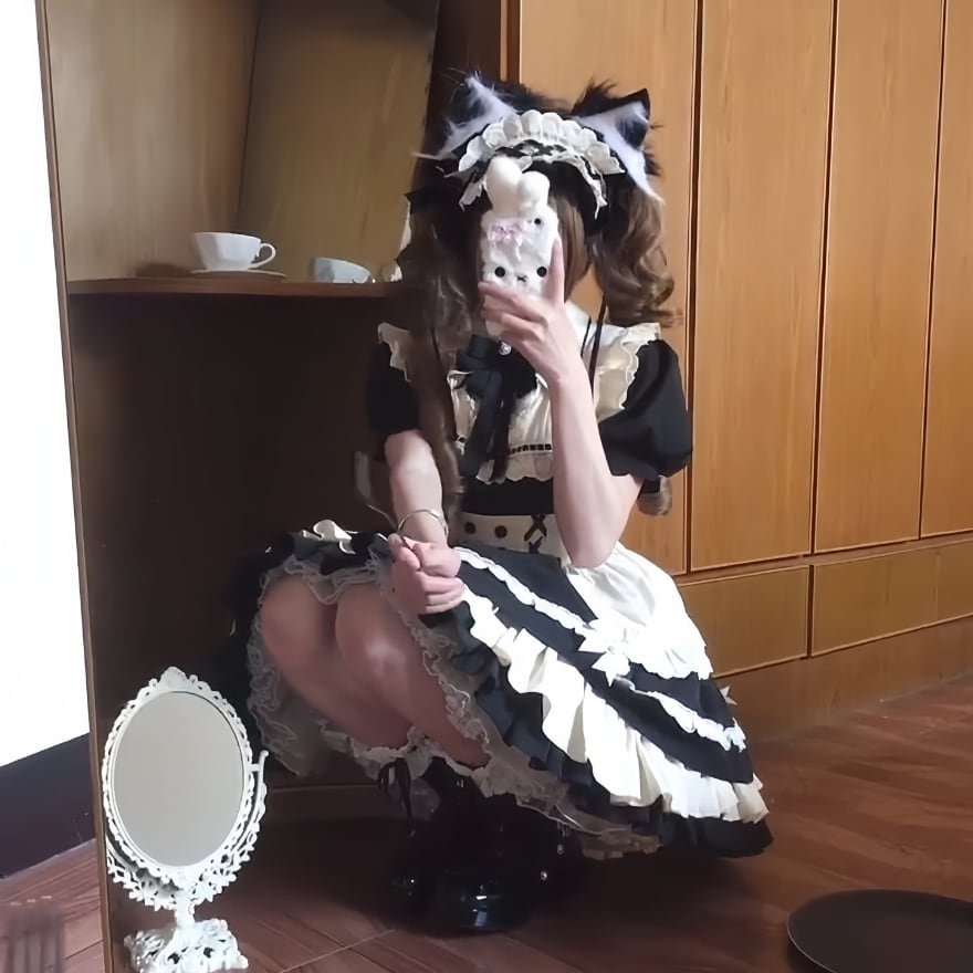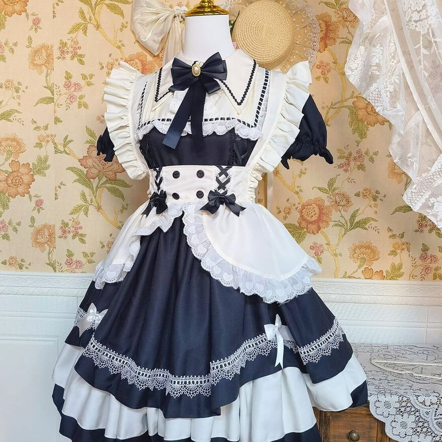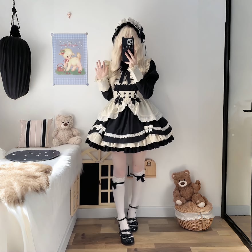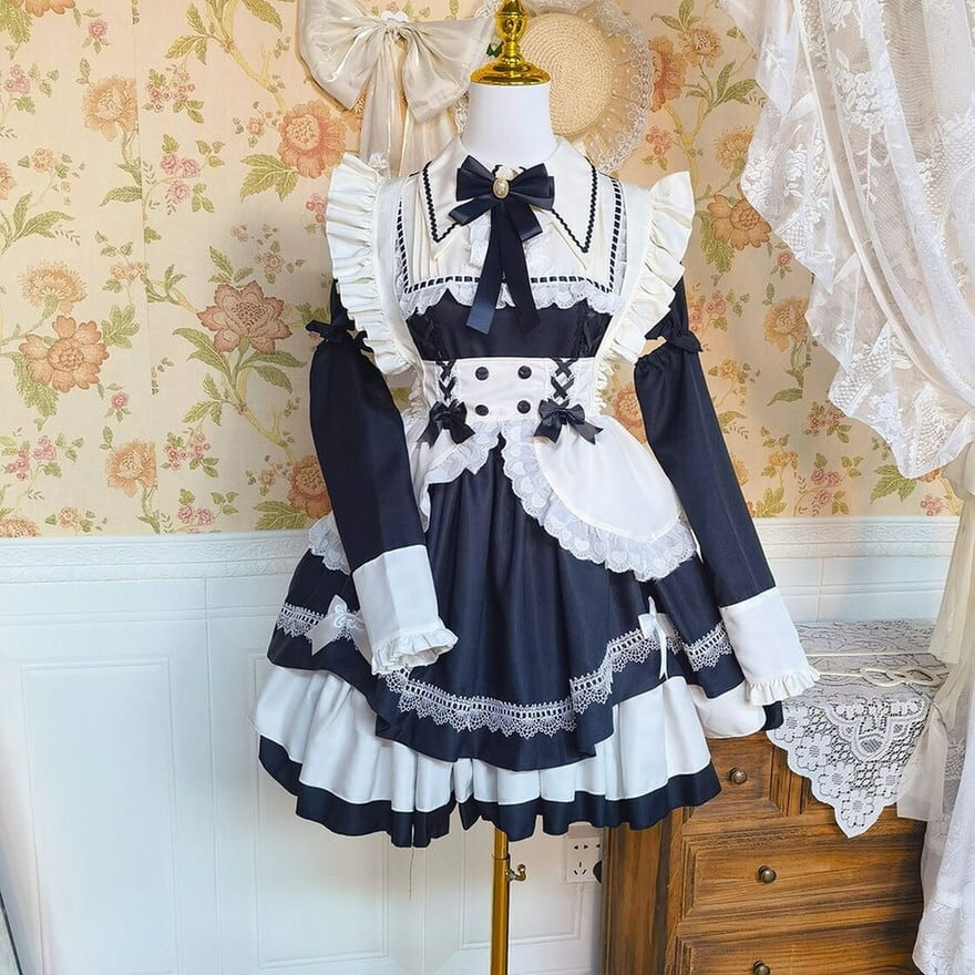 関連キーワード: #メイド服 #クラシカル #ロリータ #ゴスロリ #フリル #レース #ティアードスカート #コスチューム #コスプレ #イベント衣装 #黒白 #バイカラー