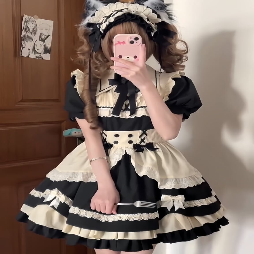 充実のフルセット: ワンピース、エプロン、継袖、リボンタイ