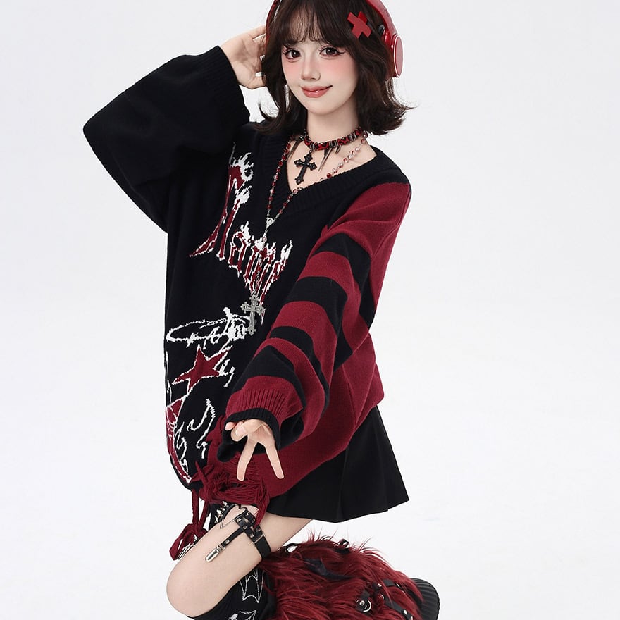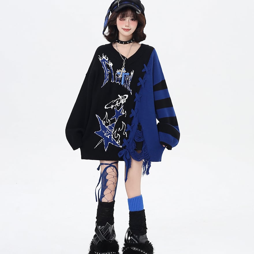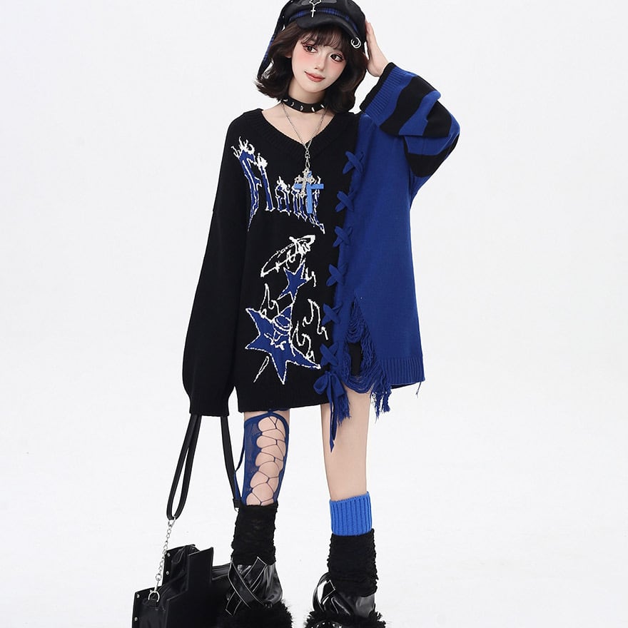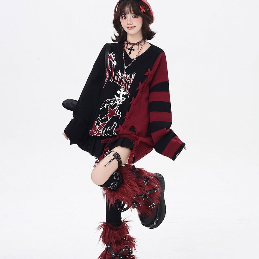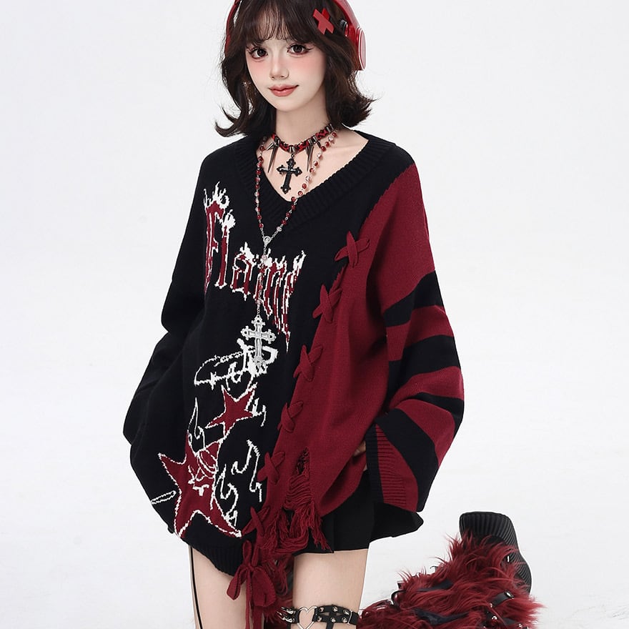 関連キーワード: #地雷系 #パンク #ニット #セーター #編み上げ #レースアップ #バイカラー #サブカル #病みかわ #オーバーサイズ #ストリート