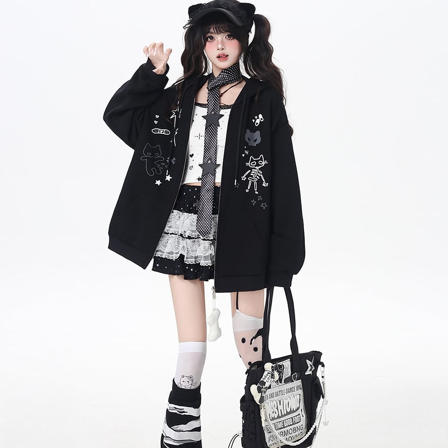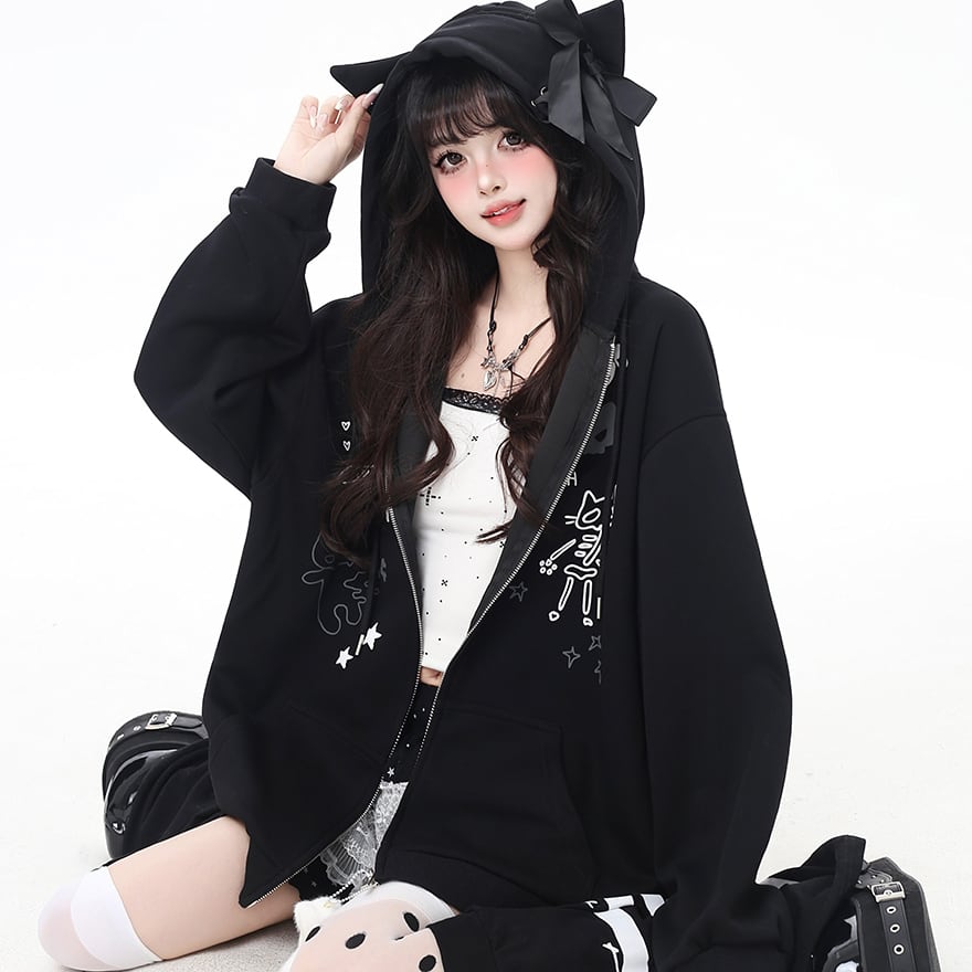 関連キーワード: #地雷系 #猫耳 #パーカー #オーバーサイズ #病みかわ #サブカル #裏起毛 #ストリート #黒コーデ #参戦服