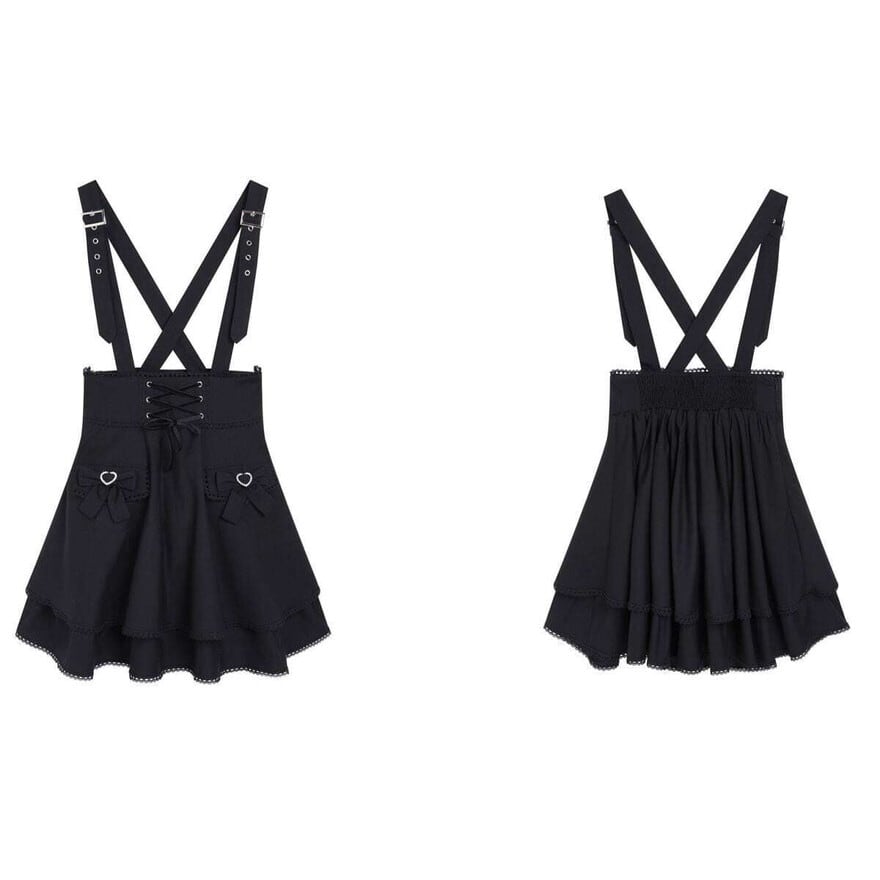 【即納】地雷系/量産型 編み上げ ✦ ハートバックル ティアード サスペンダースカート ミニ丈
