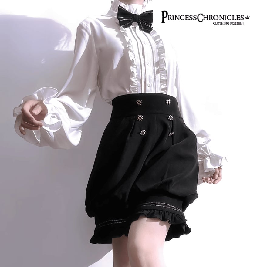 中世ヨーロッパの貴族が纏う衣装をモチーフにした、凛々しくも優雅な王子系ハイウエストかぼちゃパンツ(キュロット)です。