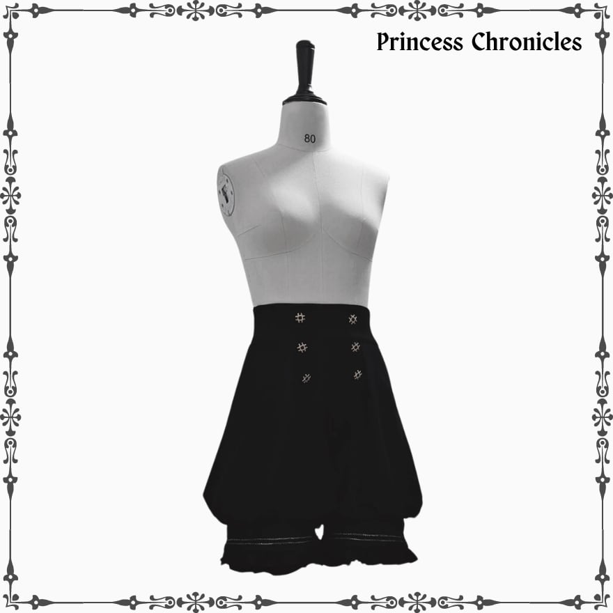 【即納L】王子系・少年装 ハイウエスト 金ボタン&フリル 貴族風かぼちゃパンツ(黒)